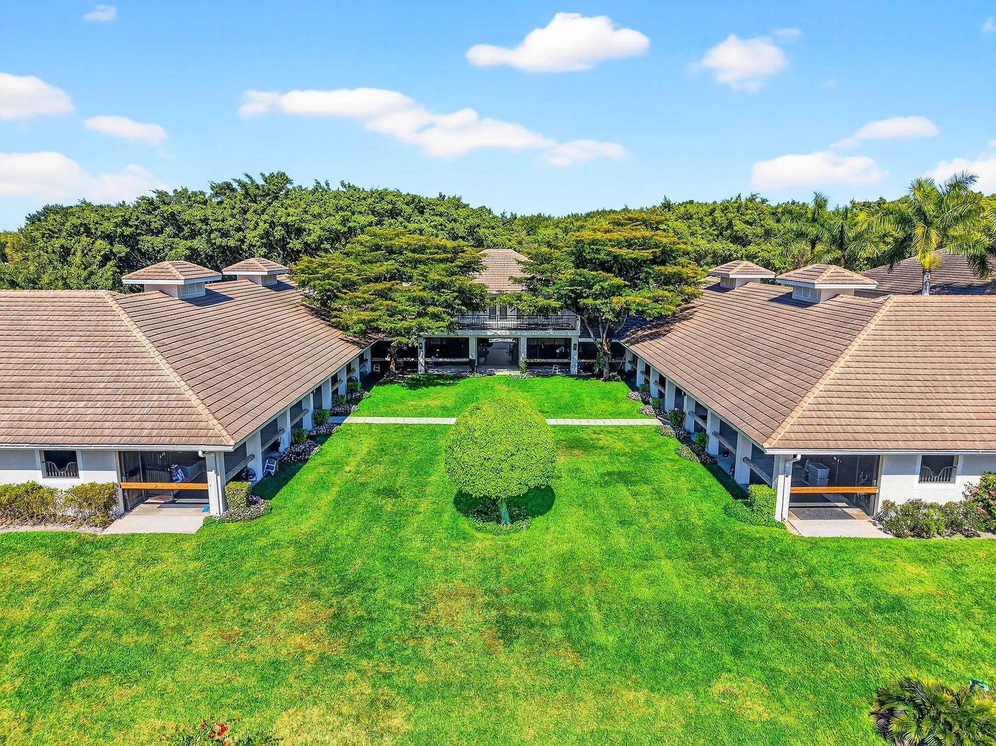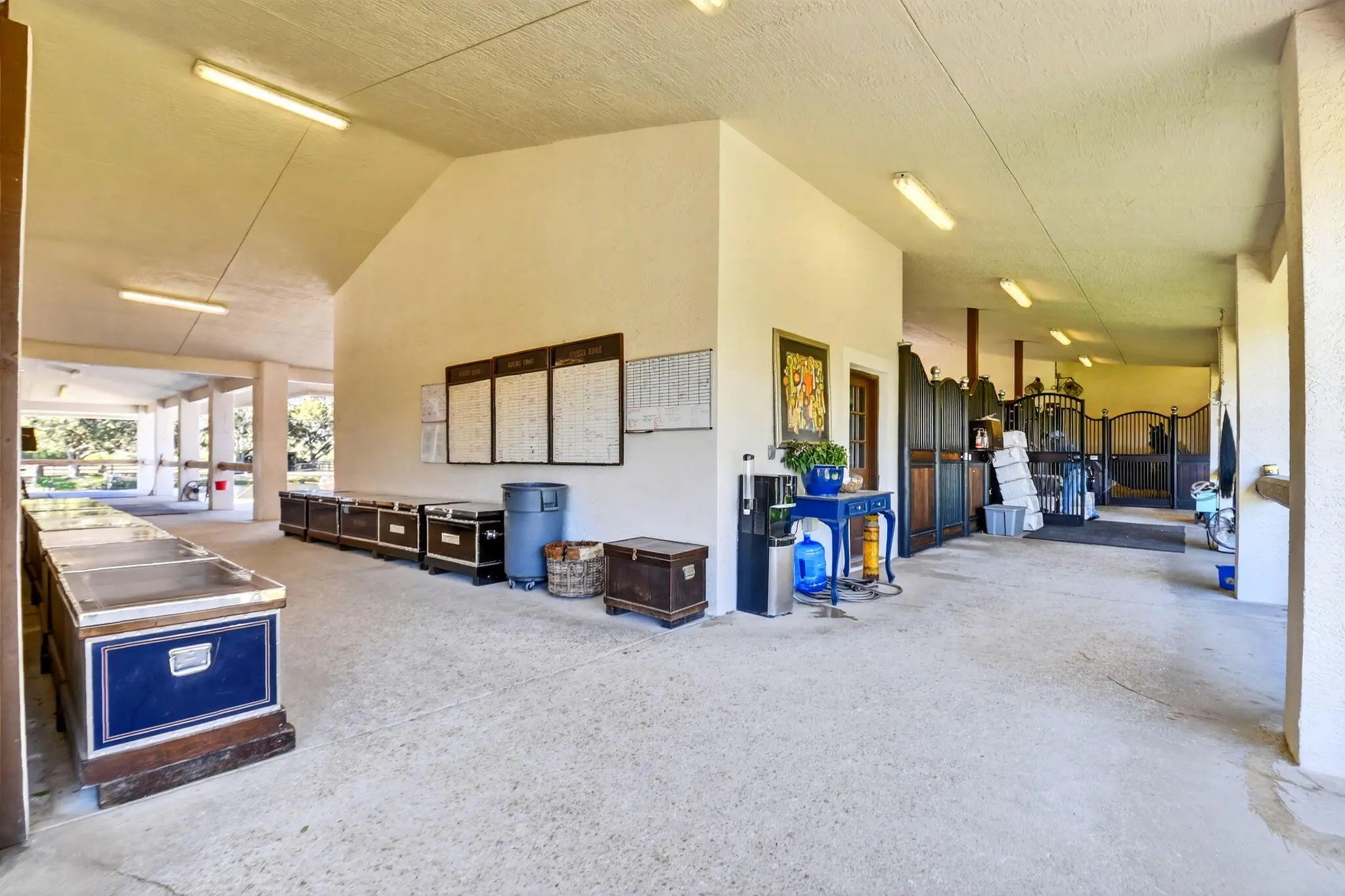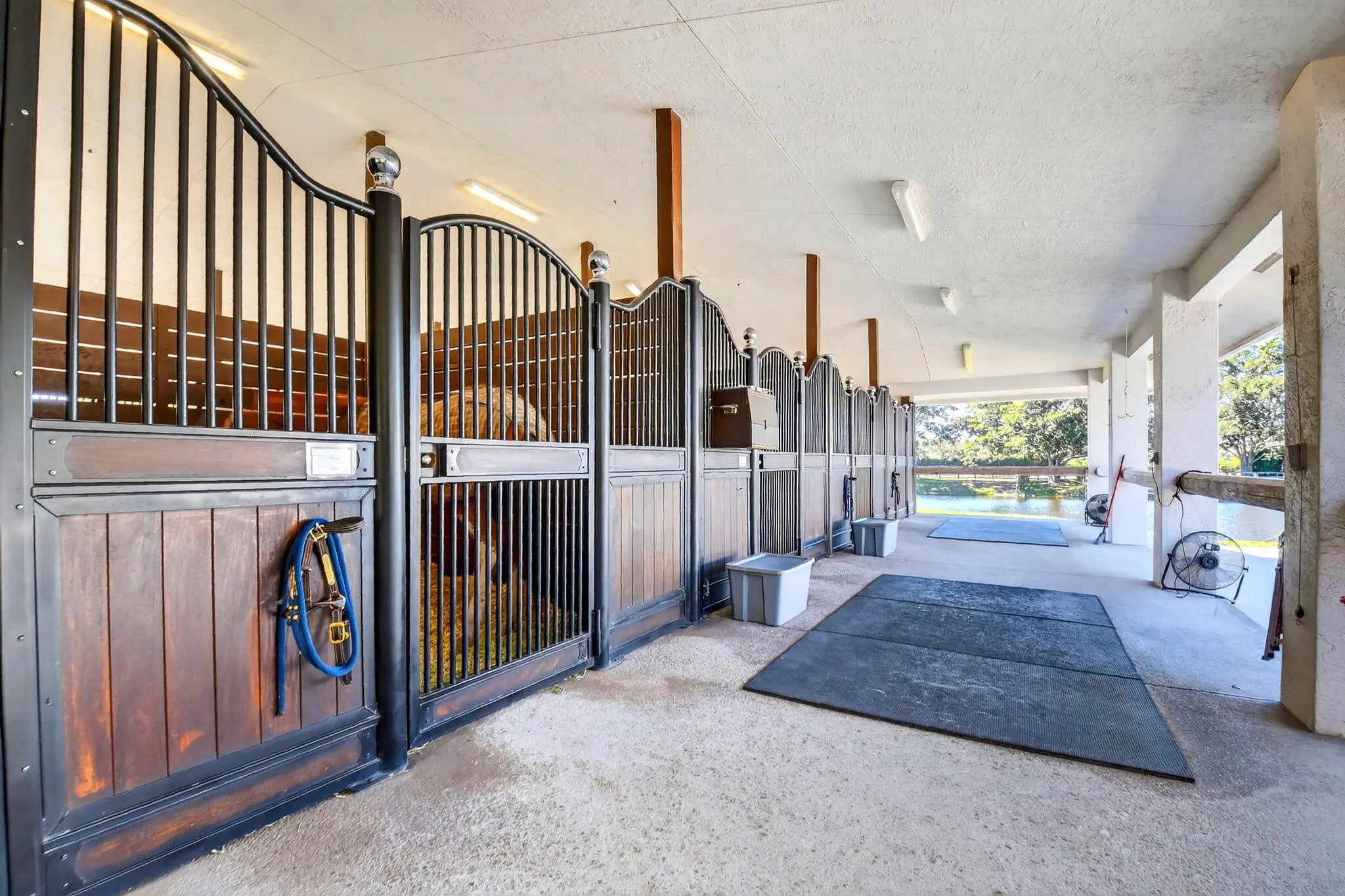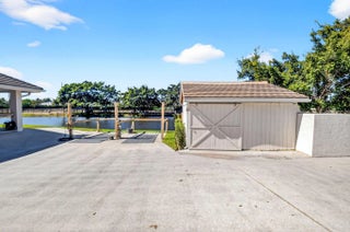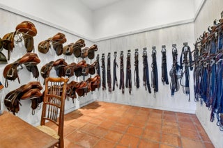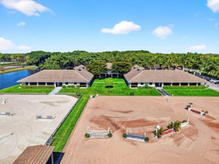 Idyllic and refined, this premier equestrian farm blends luxury, privacy, and top-tier performance facilities on one of the most desirable double lots in Grand Prix Village. A rare find, the property offers a short hack directly to the show, set within a serene, sprawling landscape framed by mature clusia hedges, established palms, and meticulously maintained grounds. The farm features an exceptionally spacious main barn with 58 12' x 12' stalls, plus additional overflow stalls out back. The barn showcases custom, high-end stall fronts, three well-appointed tack rooms, and two professional arenas, one sand and one all-weather, complemented by a new hot walker and a round pen with premium footing. Designed to support high-level training, competition, and boarding, the property