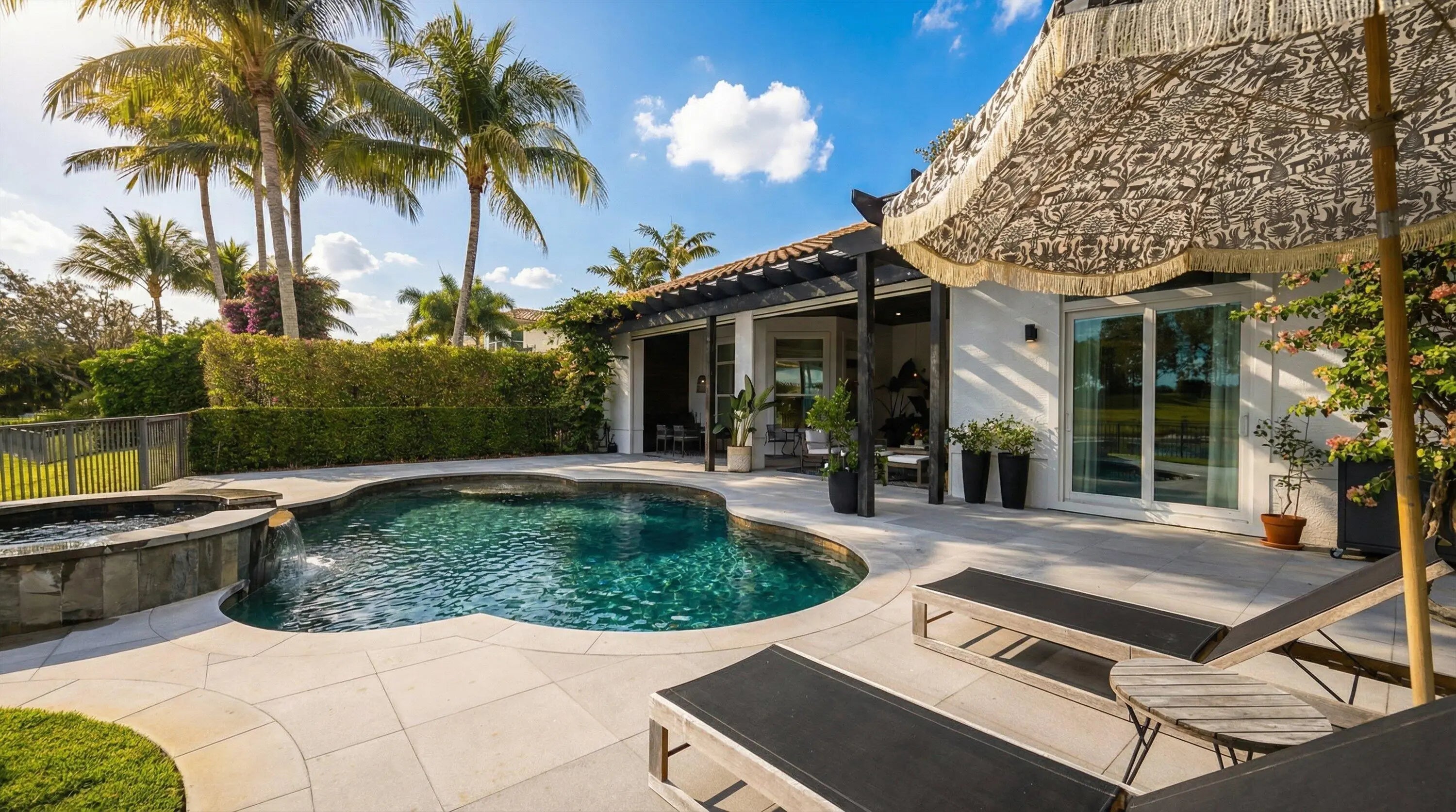Stunning fully renovated residence located in the highly sought after Hunters Chase section of Palm Beach Polo. Originally built in 2015, this beautiful four bedroom, four bathroom home has been extensively updated over the past few years with high end finishes and modern design throughout. The split four way floor plan offers exceptional privacy, with each bedroom positioned separately, ideal for guests, family, or a home office setup. A separate media room adds flexible space for movie nights, gaming, or a private lounge. Warm wood flooring flows through all main living areas, creating an inviting and cohesive feel. The spacious kitchen has been beautifully redesigned with custom cabinetry, elegant countertops, and fully integrated appliances that provide a sleek, seamless look, perfect