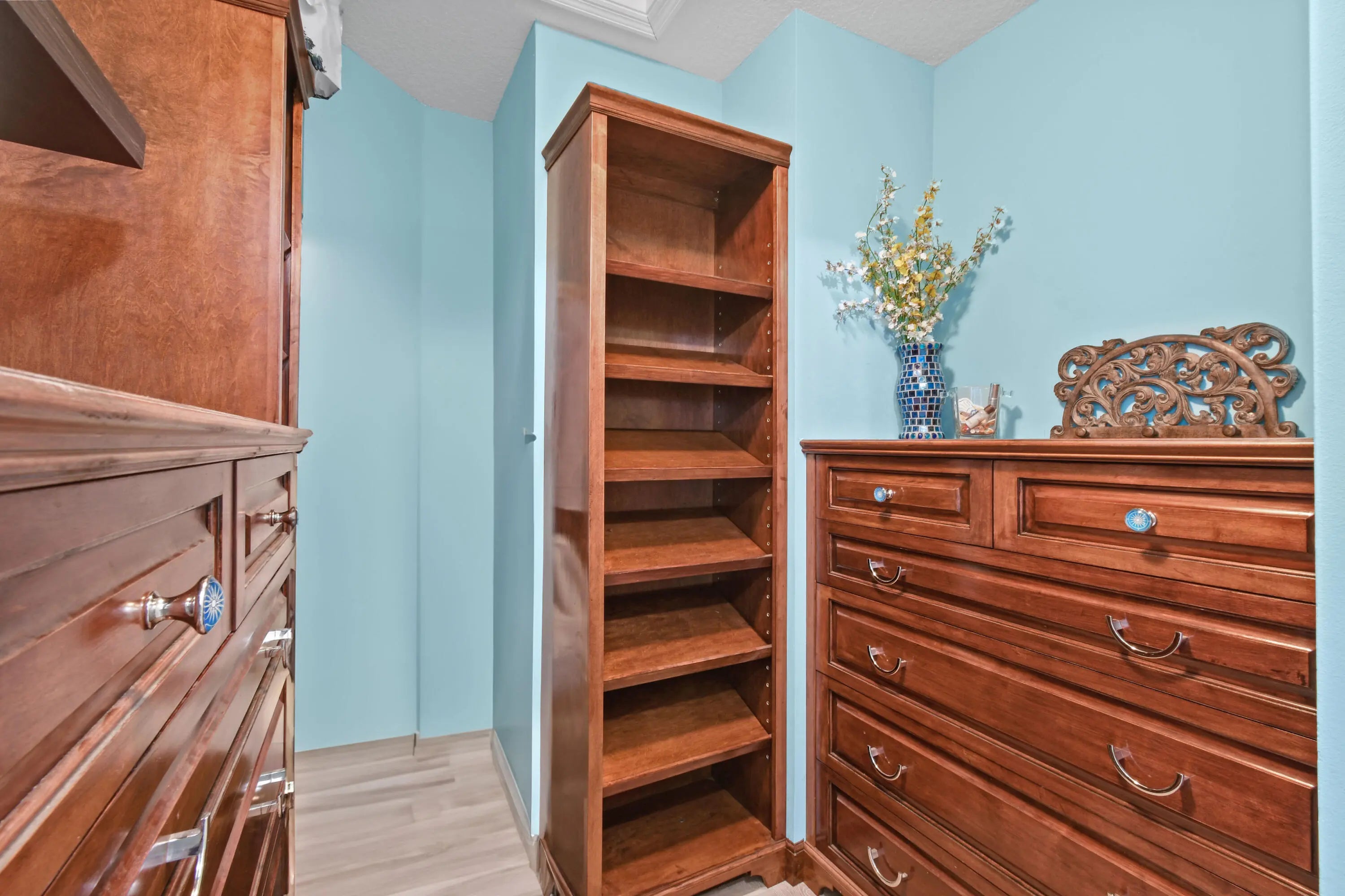 Built-in Shelves, Kitchen Island, Pantry, Upstairs Living Area, Walk-in Closet