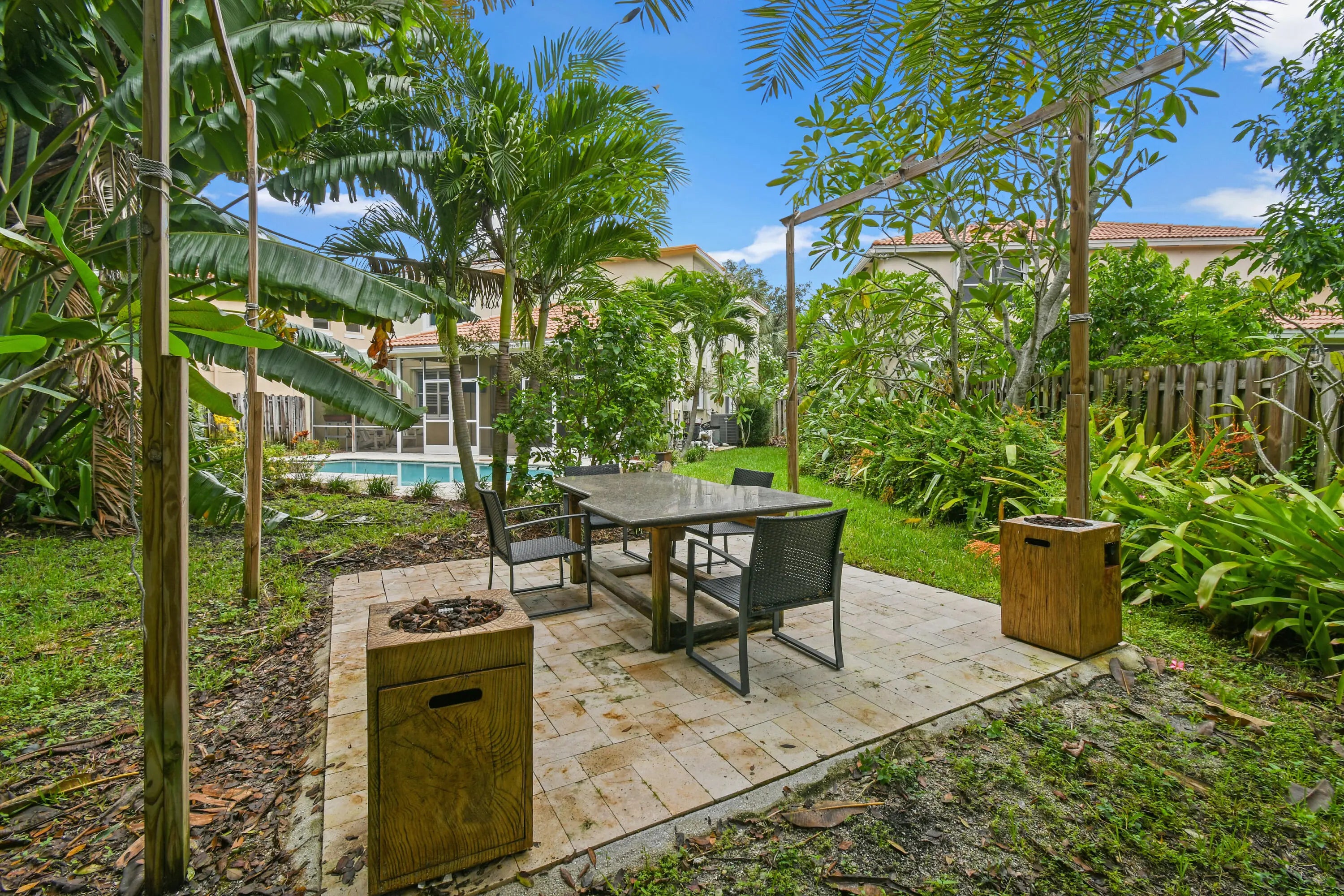 :Villa Palma at Northlake is a gated community that welcomes pets and features a small dog park along with sidewalks. This 4-bedroom, 2.5-bathroom residence has a saltwater pool, a fenced yard, and a screened porch equipped with seating, a built-in grill, and a mini fridge. The backyard has an open dining patio adjacent to the pool, complemented by banana trees that enhance the lush landscaping and provide added privacy (New Roof and Water Heater 2025) The house was also painted all white on the inside except for one bedroom. Also, HOA includes Wifi and tv package! Tenants pay all utilities and pool maintenance.