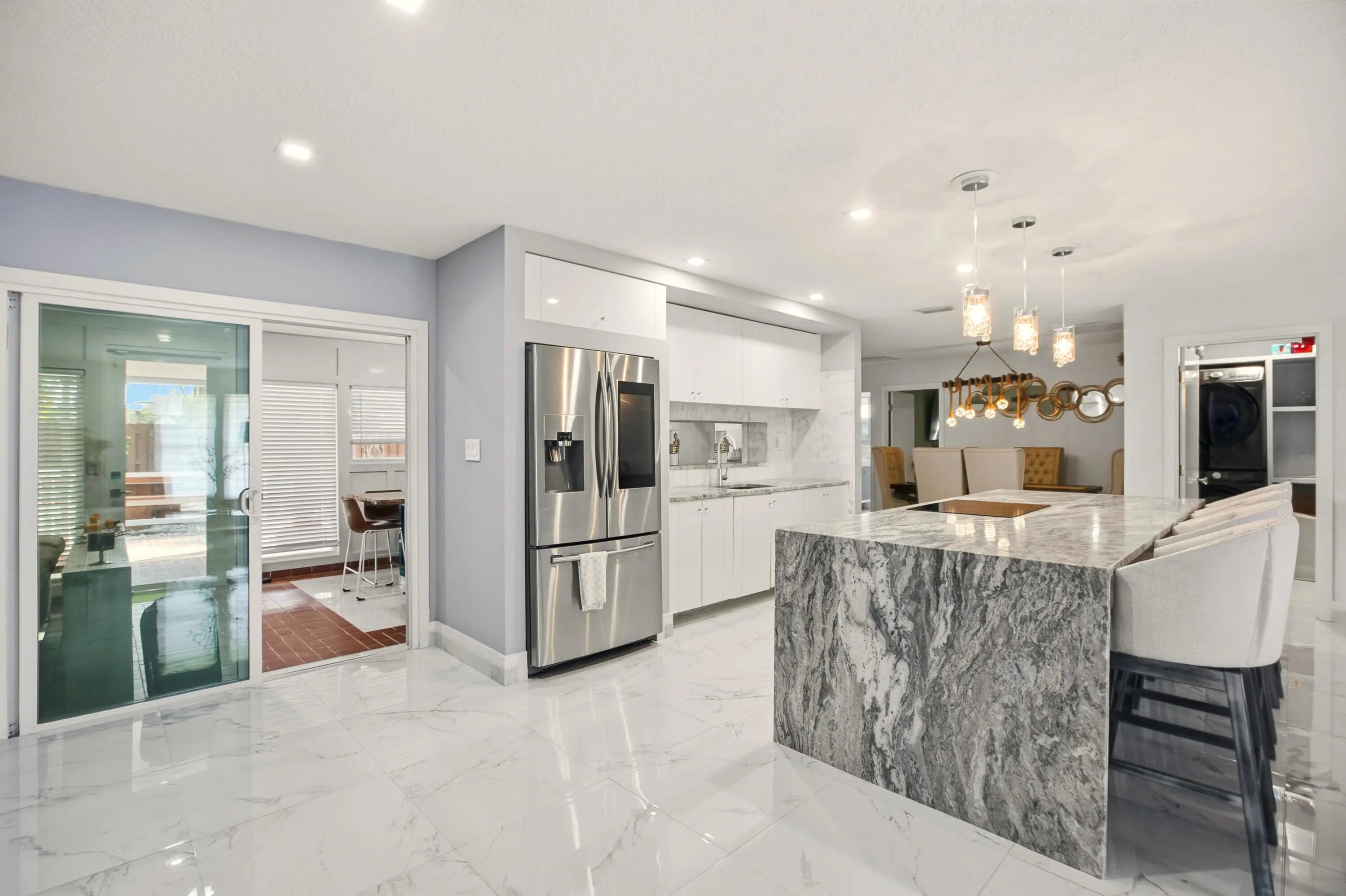 NO HOA, this home has been renovated, 4 Bedrooms and 2 baths, beautiful kitchen with all appliances, dining room, family room and porch, marvelous ceramic tiles allover, beautiful blue bar with wine cooler, 4 parking spaces in driveway, located only 2 blocks from 2 Shopping centers, not far from the quarter horses and polo stadium, new roof in 2023, Gas Range with hood in 2025, 2 SS refrigerators 2022, another white refrigerator, Shed, BIG 20' X 15' Jacuzzi swim spa and Built in covered grill in backyard. Big Pic Nic table, floating counter with electric stove top.It won't last, make your appointment today!