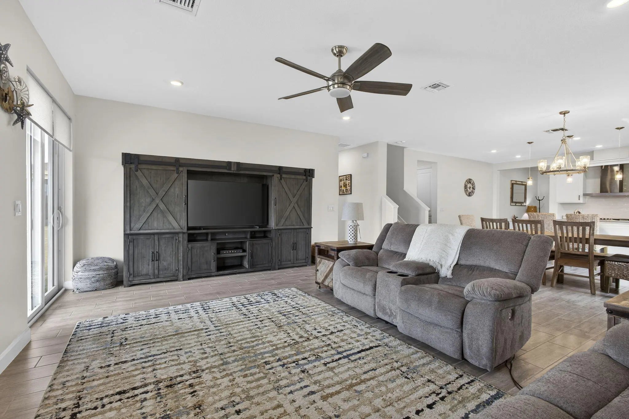 Sophisticated and spacious! This 5 bedroom residence on tranquil green space has a versatile flex room on the main level making it the perfect space for a home office, studio, or playroom.Upstairs you'll find 4 bedrooms and 2 full baths in between a spacious loft ideal for casual living or media space. Thoughtfully designed with upscale finishes, the home features chef's kitchen showcasing quartz countertops,stainless steel appliances and a gas range, ideal for entertaining and everyday living. Upgraded tile flooring enhances the modern aesthetic throughout the main living areas. With 3.5 beautifully appointed baths and a 3 car epoxy floor garage this home delivers comfort, functionally and timeless appeal. All this in the highly sought after Arden community which includes 3 resort style