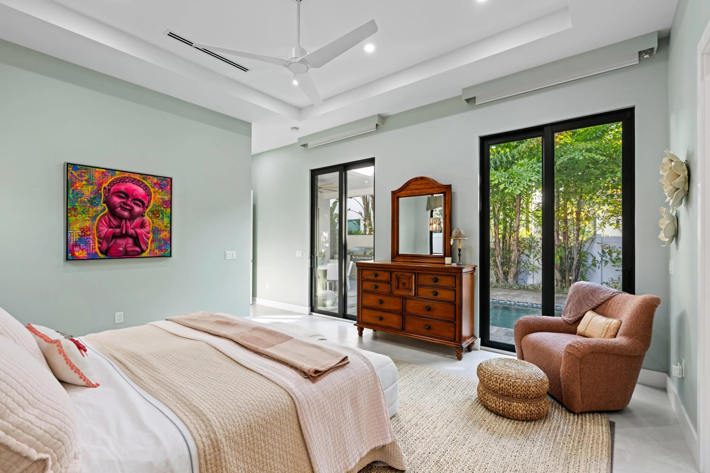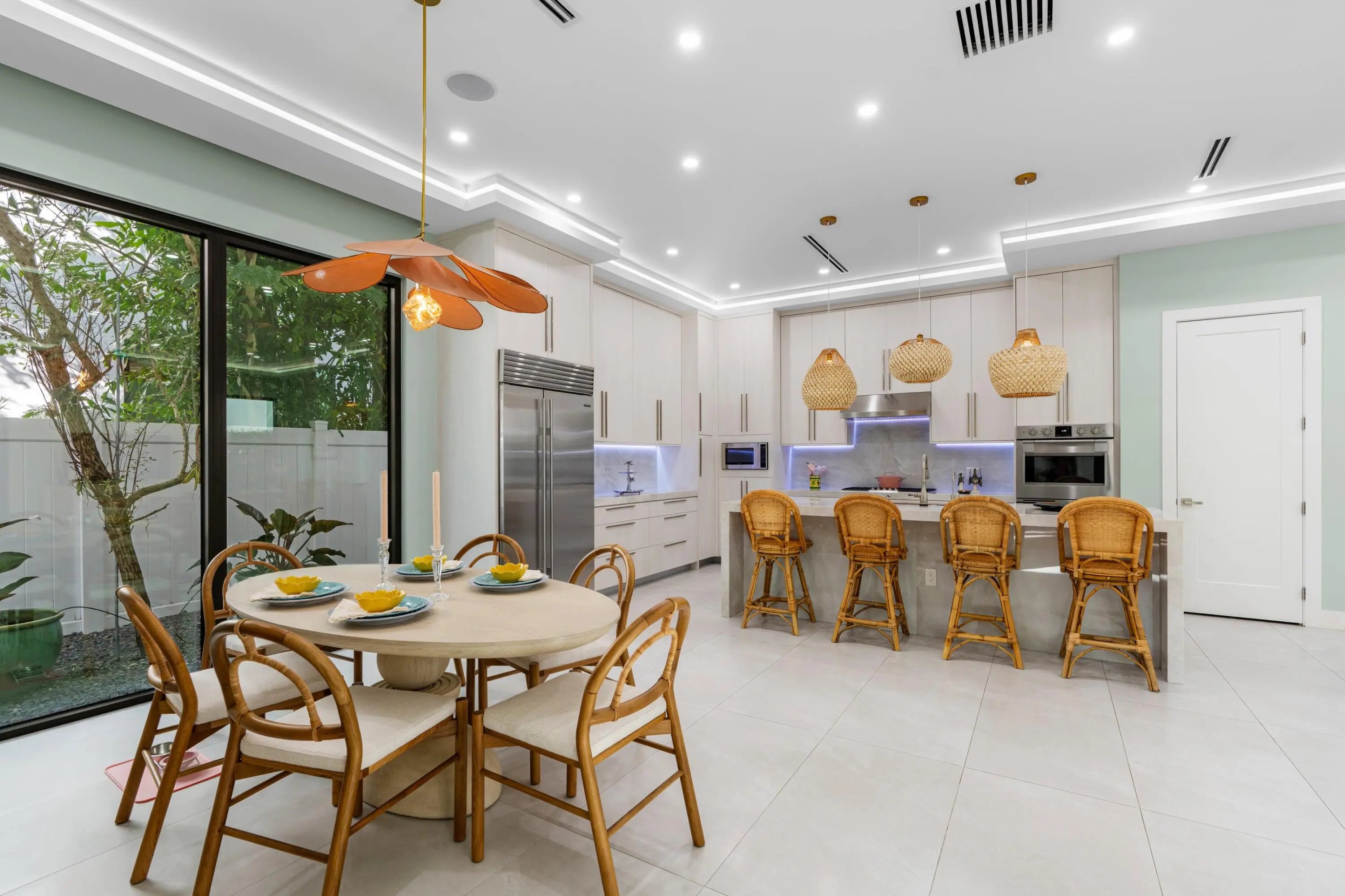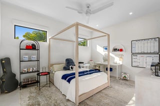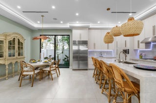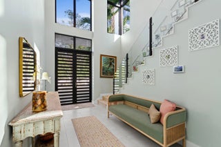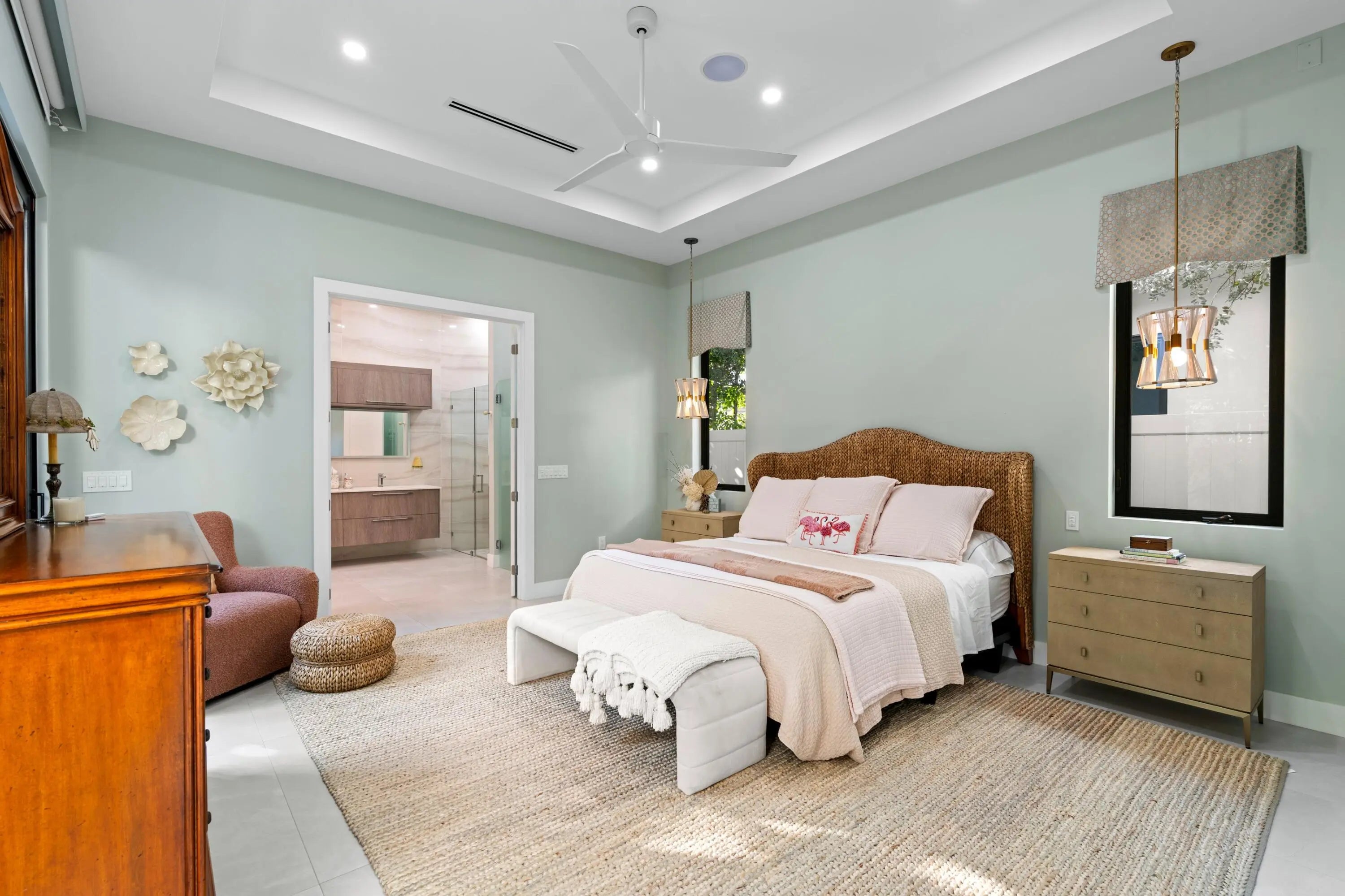 Situated on a premium lot in East Delray's La Hacienda, this 4BR/4.5BA pool home blends modern luxury with thoughtful design. Features include large-format tile flooring, custom tray ceilings with integrated lighting, smart home technology, whole-house water filtration, and security cameras. Expansive windows fill the home with natural light. The open great room combines living and dining areas with a gourmet kitchen featuring Fulgor Milano appliances. The first-floor primary suite offers a custom closet, private washer/dryer, and spa-style bath with dual sinks, soaking tub, and walk-in shower. Upstairs includes a spacious loft with covered patio, three bedrooms (three en suites), and a utility room, completing this beautifully designed residence.