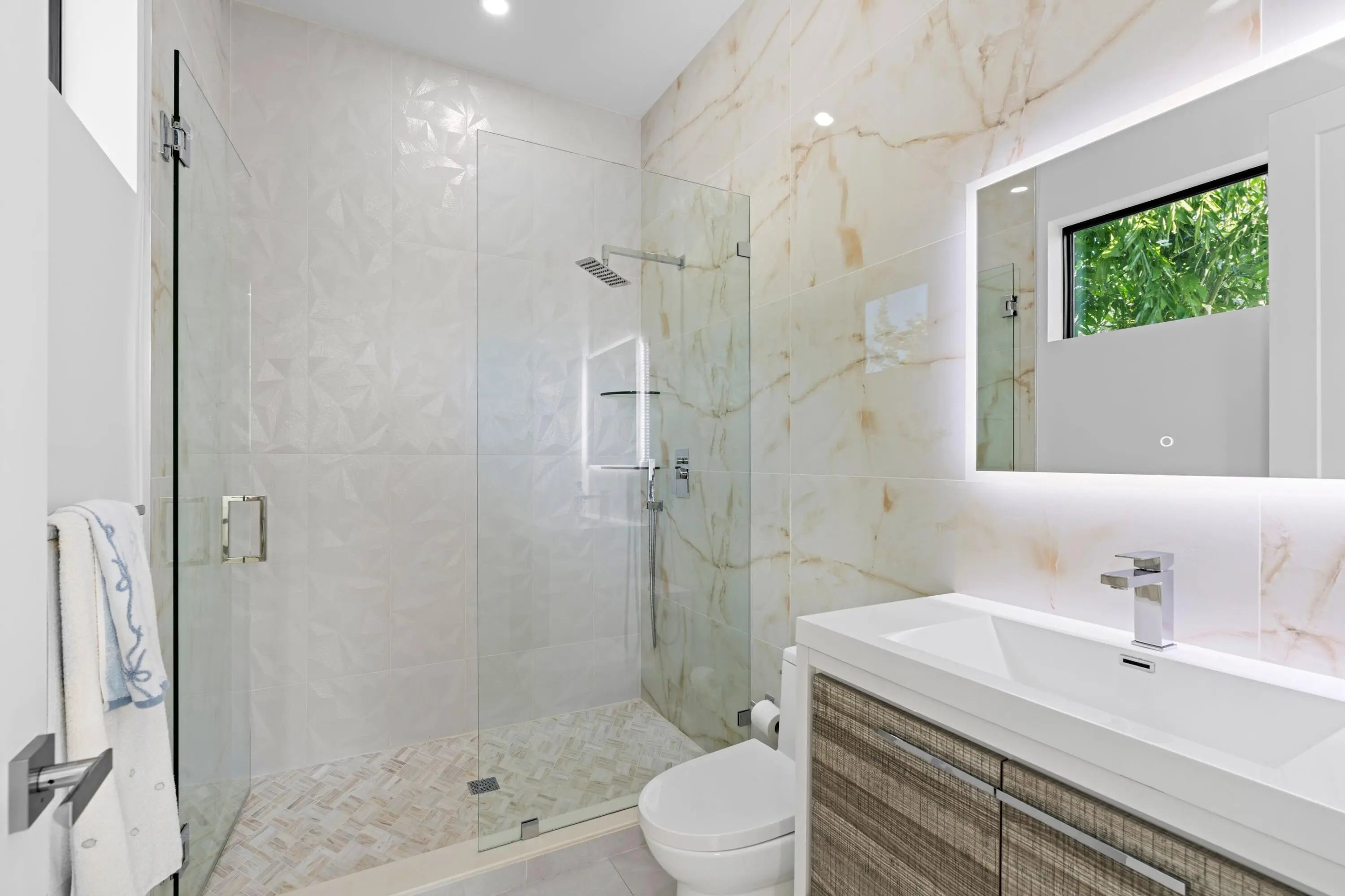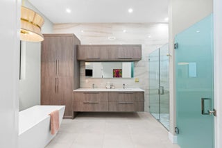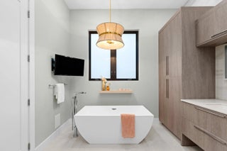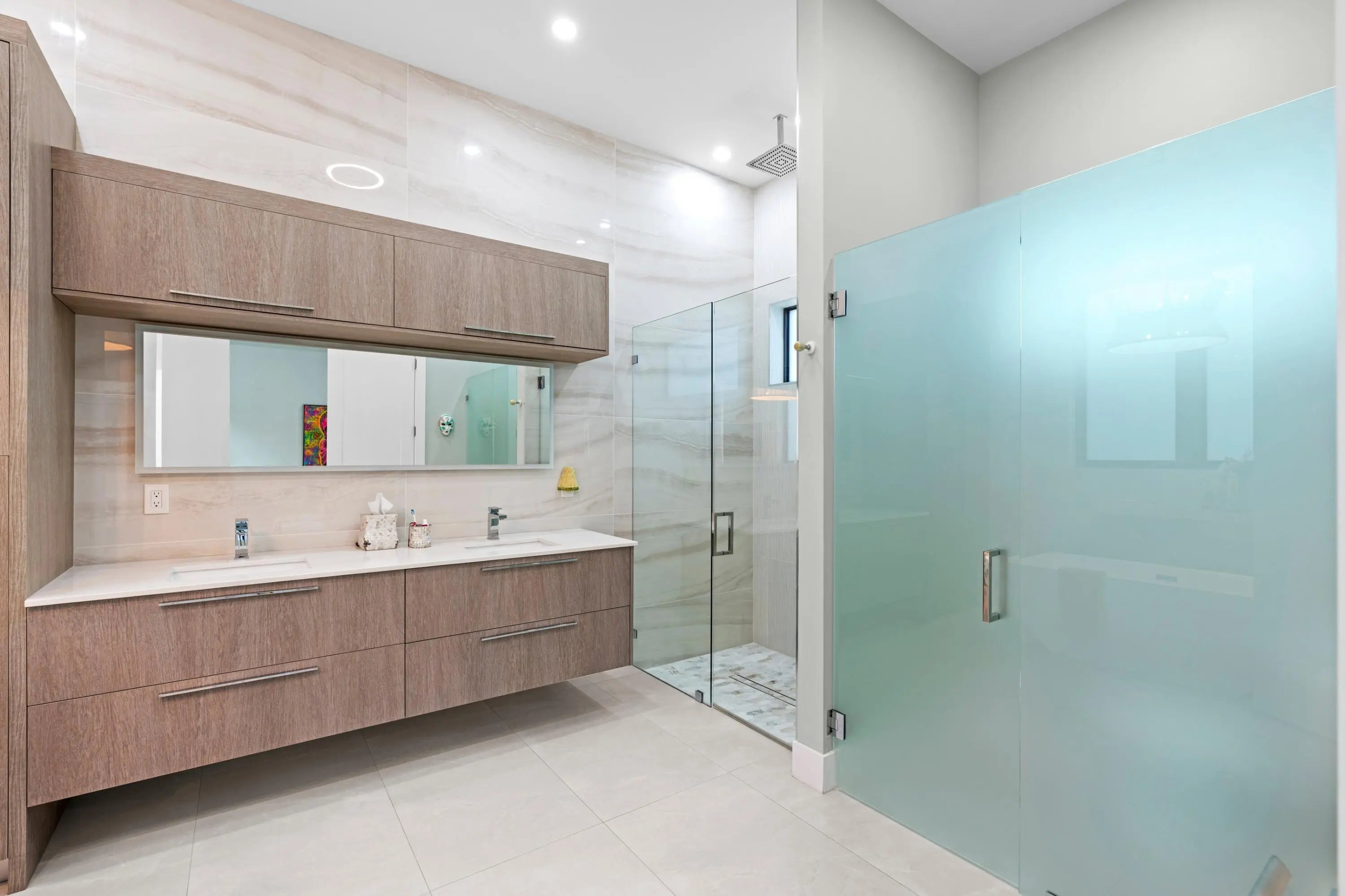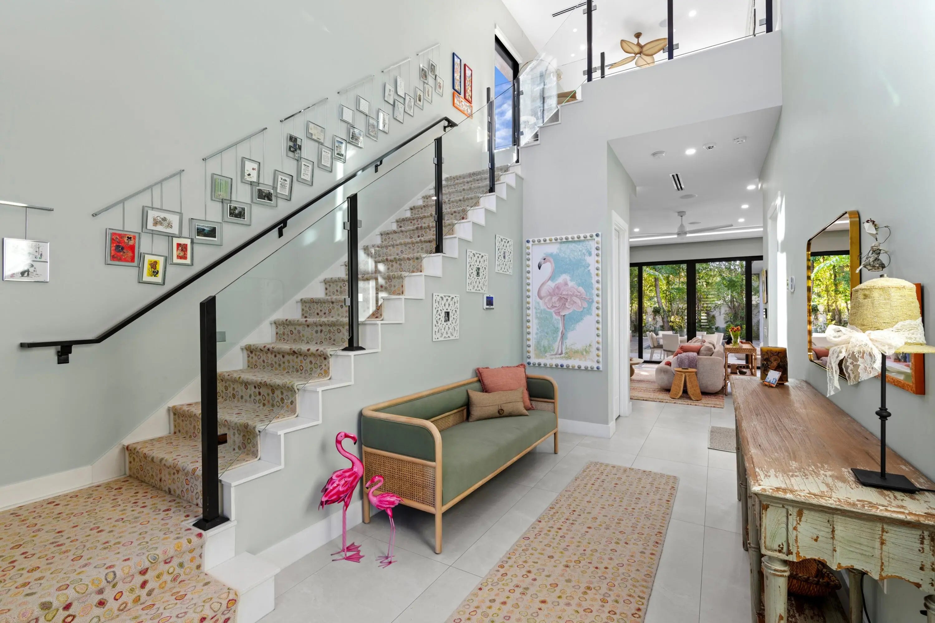 Situated on a premium lot in East Delray's La Hacienda, this 4BR/4.5BA pool home blends modern luxury with thoughtful design. Features include large-format tile flooring, custom tray ceilings with integrated lighting, smart home technology, whole-house water filtration, and security cameras. Expansive windows fill the home with natural light. The open great room combines living and dining areas with a gourmet kitchen featuring Fulgor Milano appliances. The first-floor primary suite offers a custom closet, private washer/dryer, and spa-style bath with dual sinks, soaking tub, and walk-in shower. Upstairs includes a spacious loft with covered patio, three bedrooms (three en suites), and a utility room, completing this beautifully designed residence.