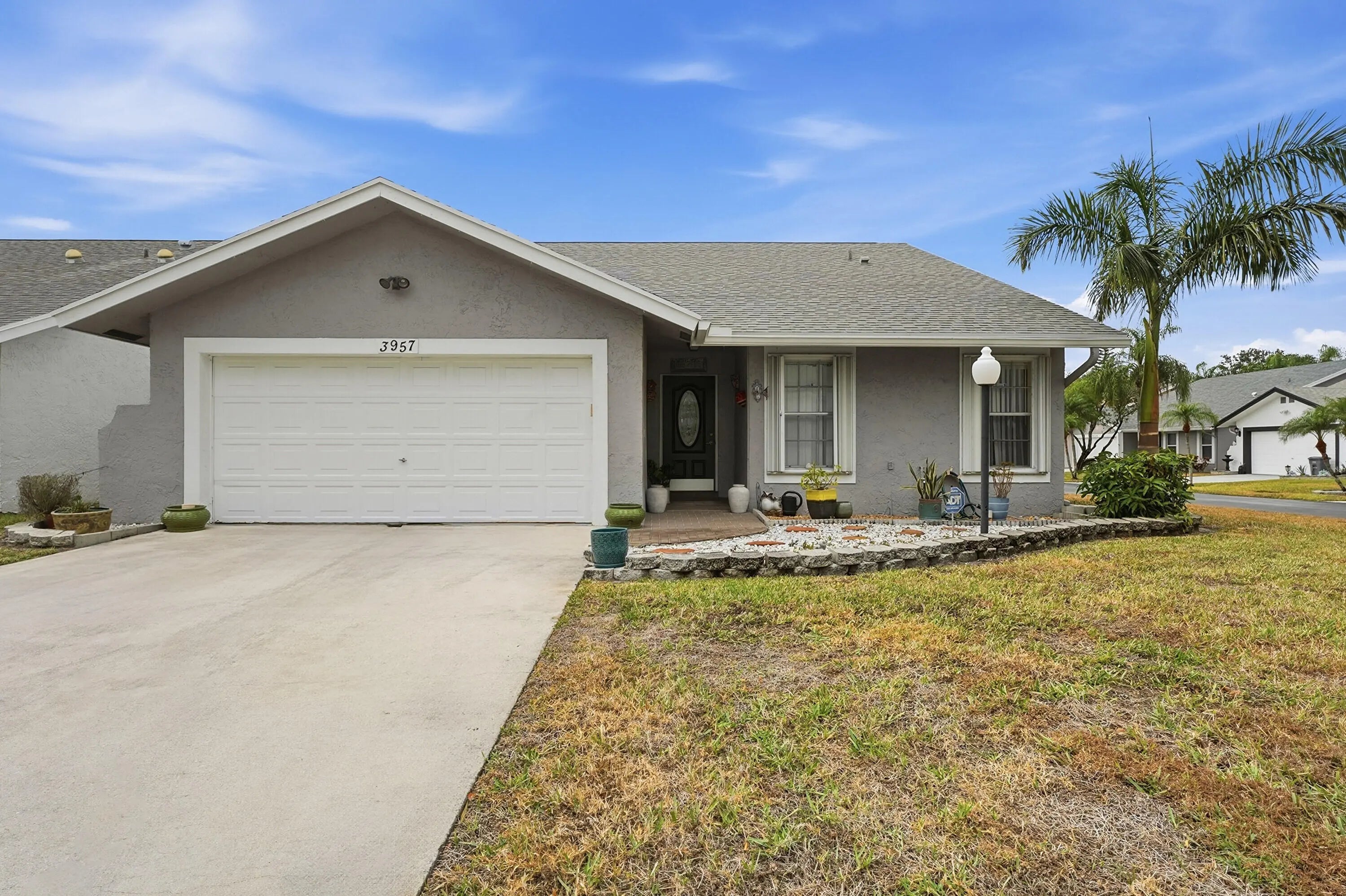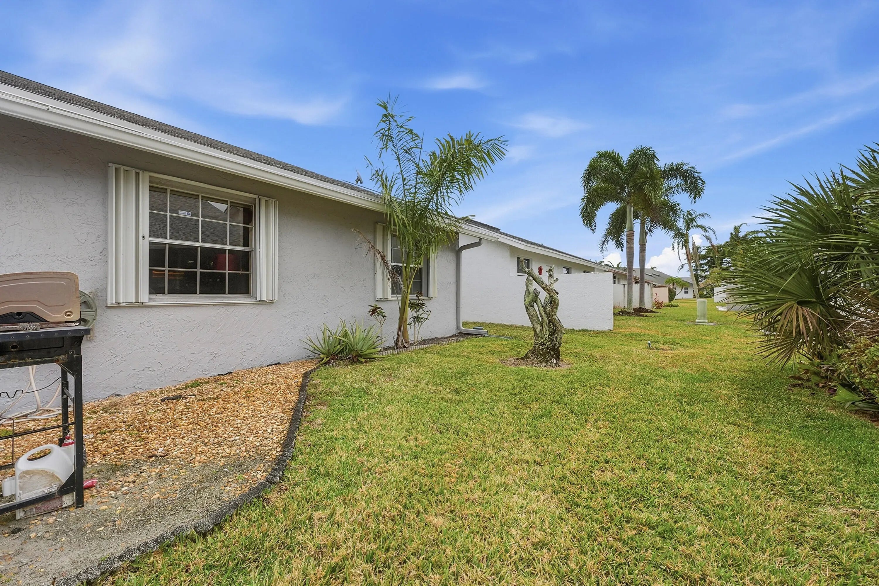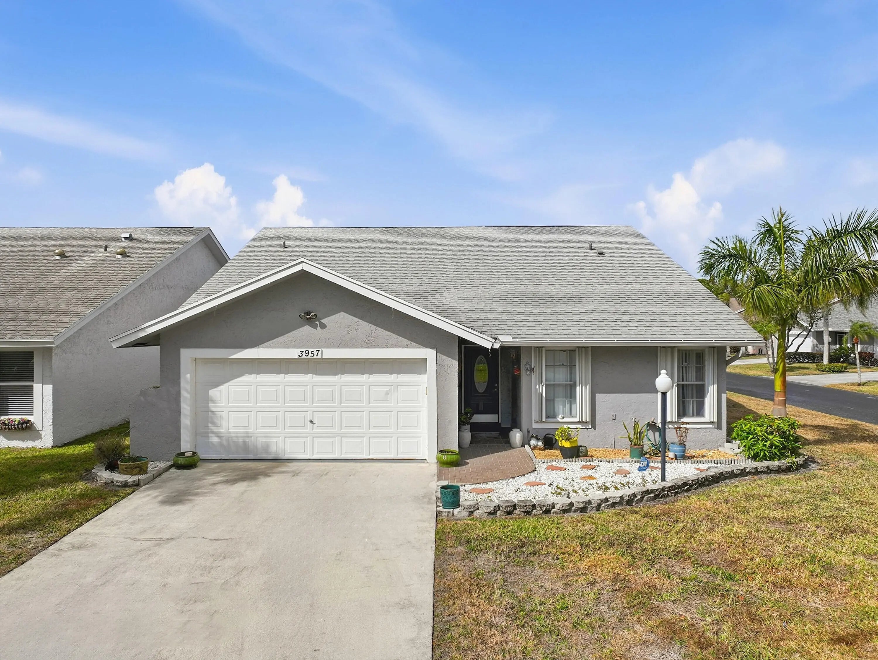 Welcome to effortless, active adult living in the highly sought-after gated 55+ community of Cypress Lakes! This charming single-story, 2-bedroom, 2-bath single-family home (1,680 sq ft living area) on a quiet corner lot is priced to sell!--your opportunity to own in one of West Palm Beach's premier resort-style enclaves without breaking the bank.Step inside to an open, airy layout featuring vaulted ceilings that create a spacious feel throughout the living areas, ceramic tile flooring for easy, low-maintenance care (with carpet in the guest bedroom), a split floor plan for privacy, and a generous walk-in closet in the master suite.
