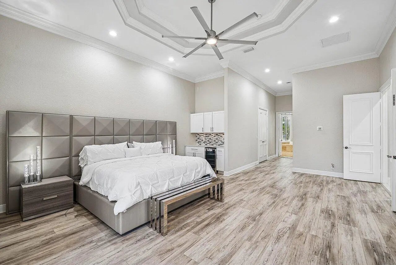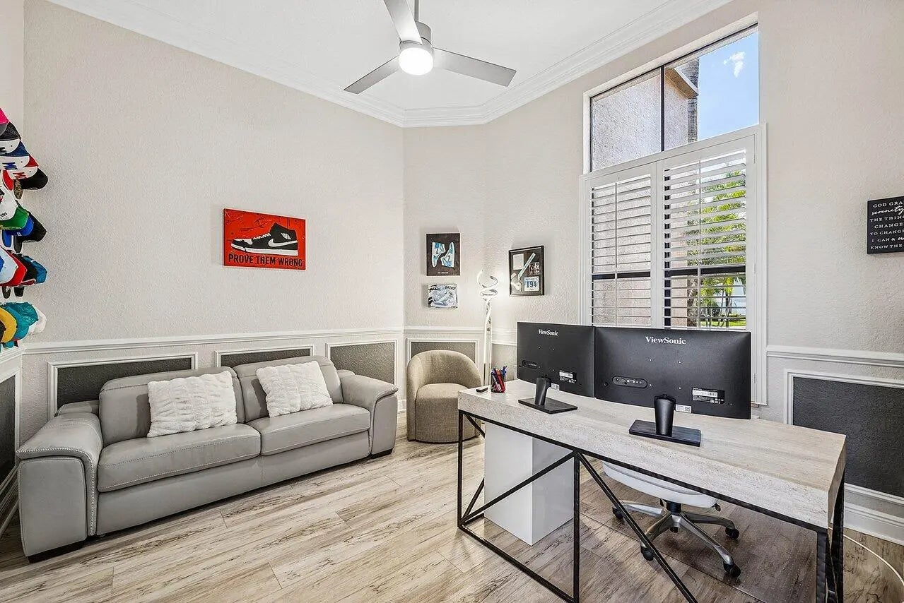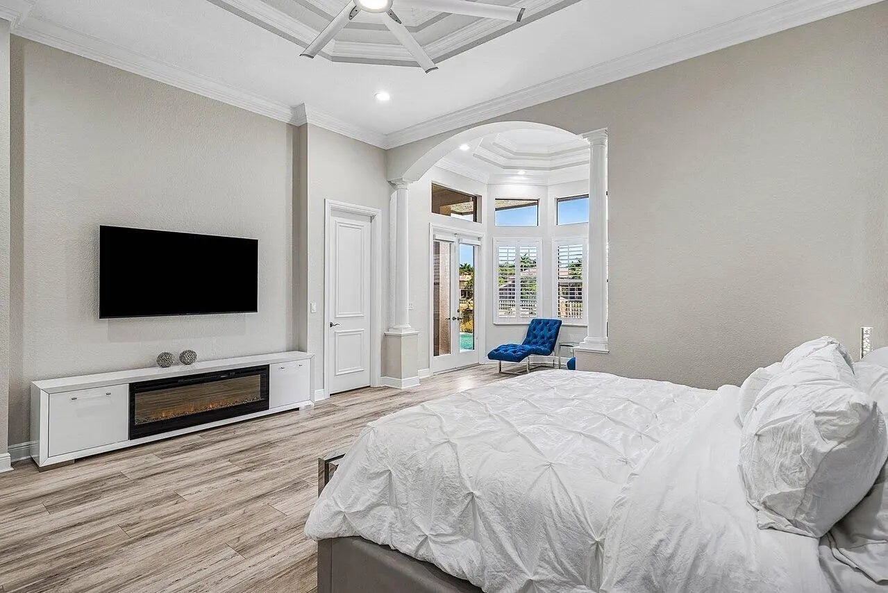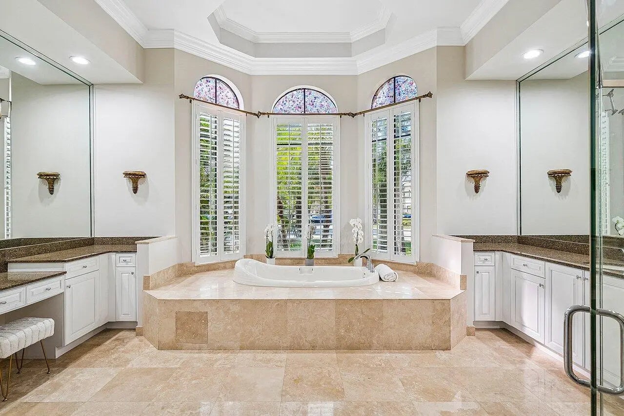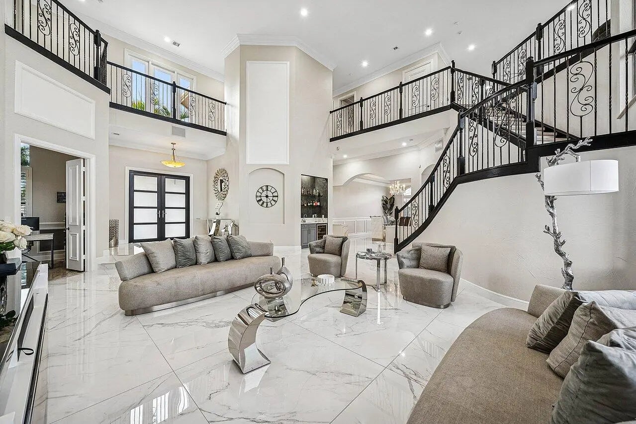 European elegance meets modern sophistication in this exquisitely updated Marseilles estate, ideally positioned on a quiet 17,000 sq ft cul-de-sac lot with sweeping lake views in Versailles. Soaring ceilings, dramatic windows, and polished Italian porcelain tile create a breathtaking first impression, with panoramic views of the resort-style pool and water beyond. Offering over 6,300 square feet, this thoughtfully designed home features 5 bedrooms, 6.5 baths, a private office, loft, media theater, and oversized 3-car garage. The stunning gourmet kitchen showcases waterfall quartz countertops, natural gas cooktop, double wall ovens, Miele built-in coffee system, custom cabinetry, apron sink, and walk-in pantry -- all flowing seamlessly into the expansive family room and casual dining area