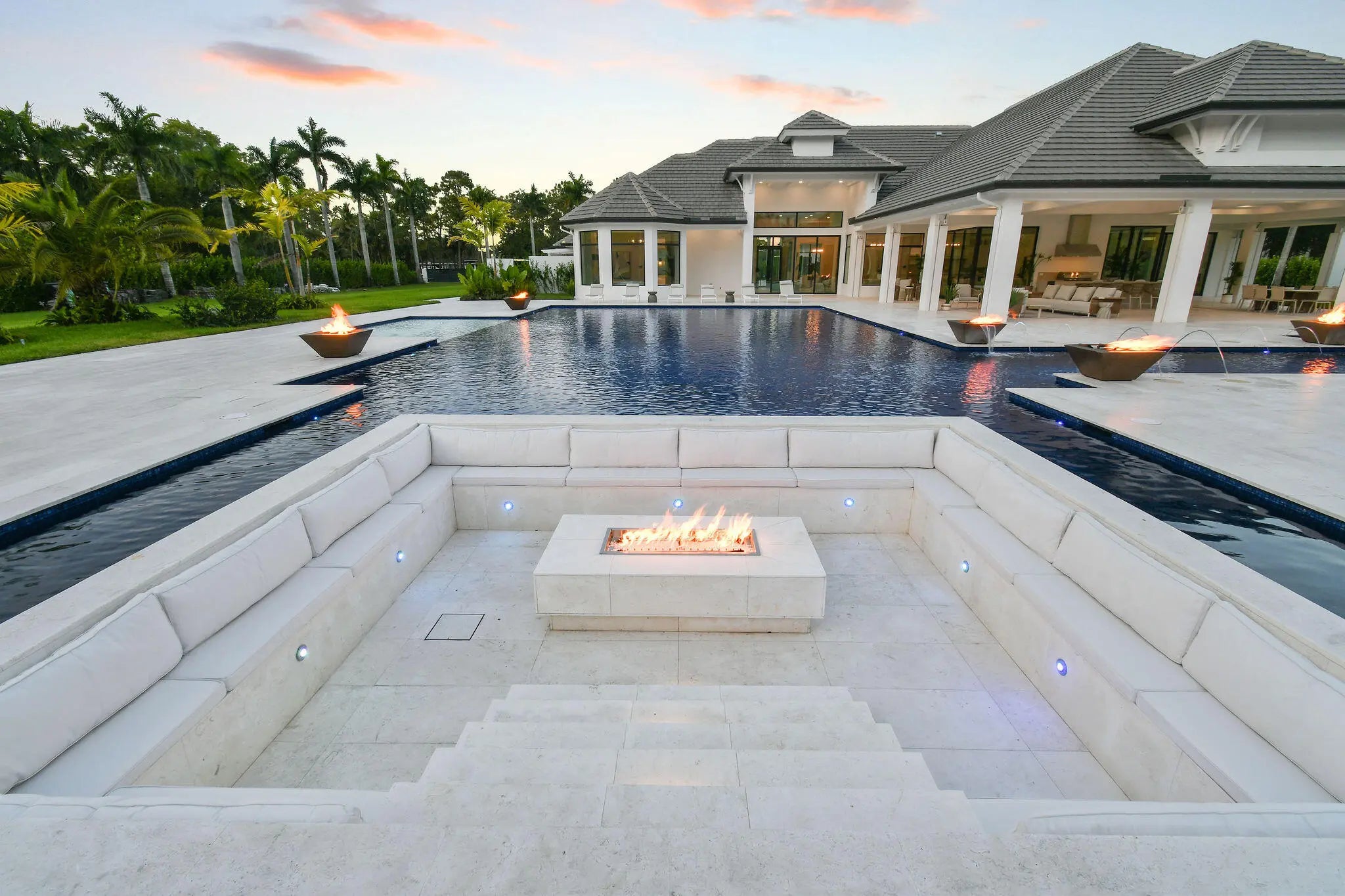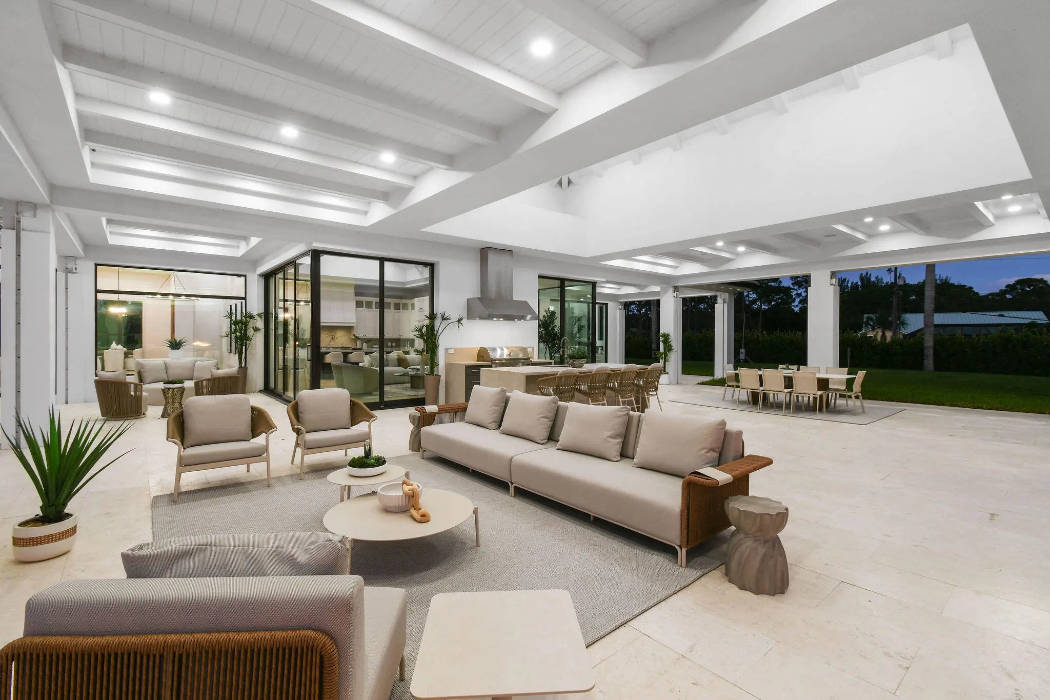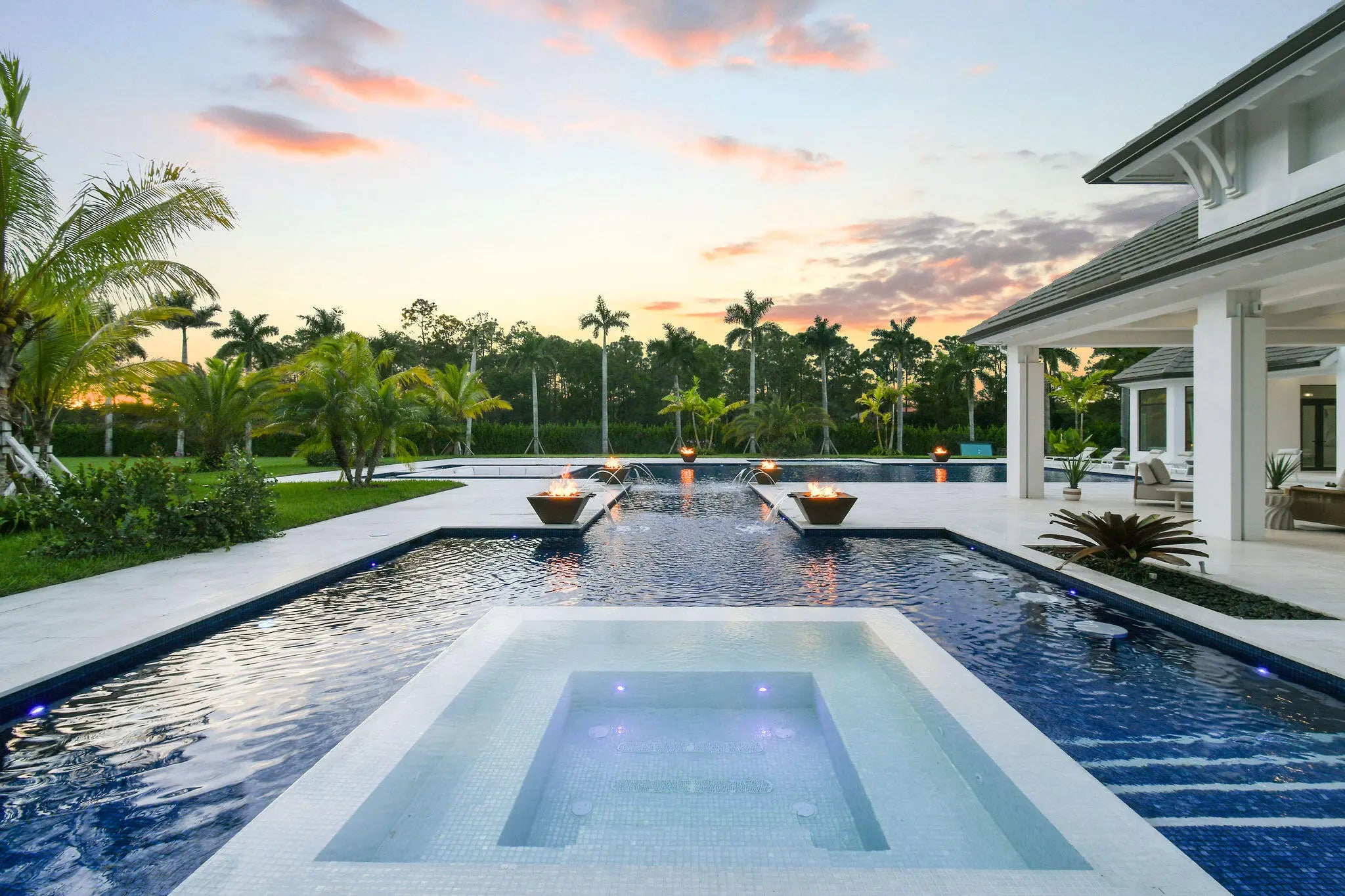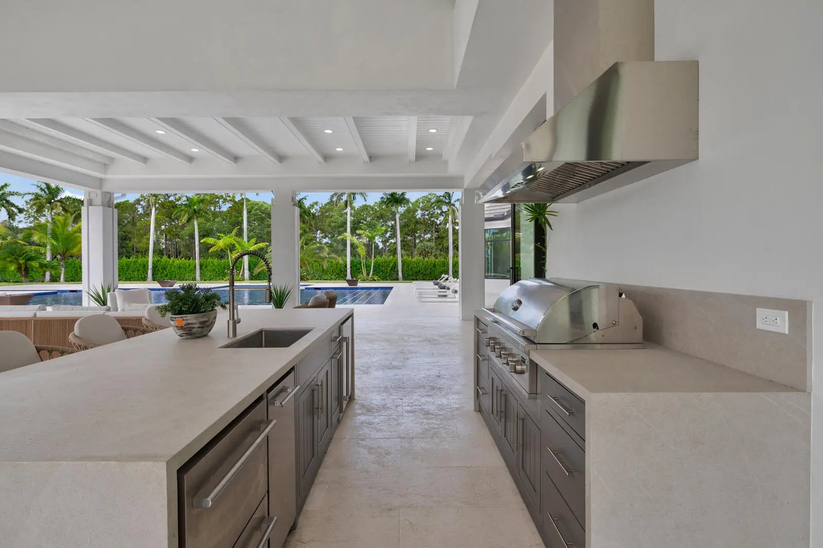 Welcome to this brand-new estate in the coveted equestrian community of Caloosa. Set on 5 private acres, this stunning residence offers over 6,000 square feet of living space with 4 bedrooms, 4 full and 2 half baths, plus an office, gym, and state-of-the-art movie theater. The heart of the home is an oversized chef's kitchen featuring high-end appliances, a spacious walk-in pantry, and elegant finishes designed for both entertaining and everyday living. Expansive living areas flow seamlessly outdoors to a resort-style pool with spa, sunken fire pit, and generous patio space with summer kitchen, perfect for gathering. Car enthusiasts will appreciate the attached 4-car garage, and additional detached 2-car garage, while those seeking wellness and recreation will love the private gym and