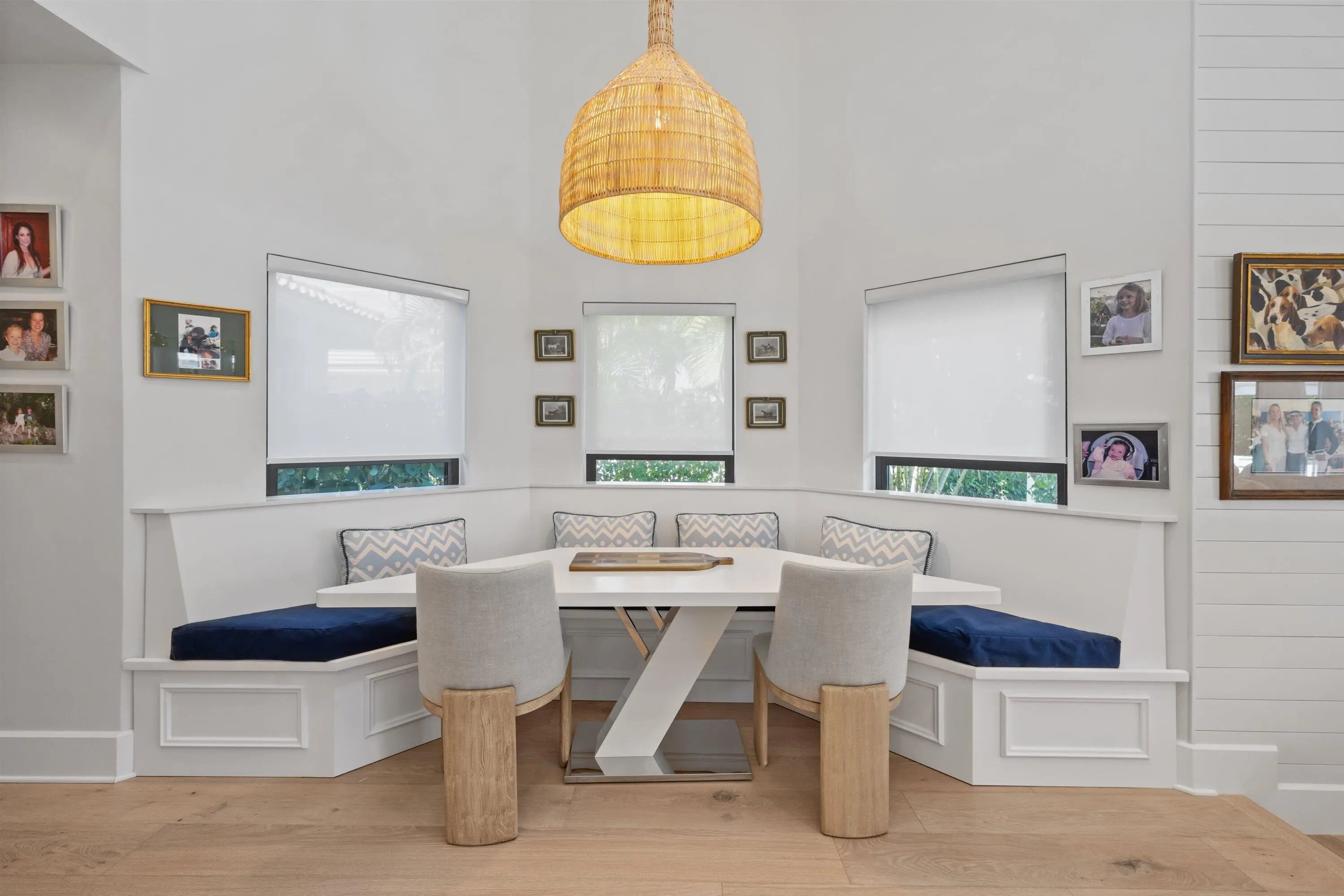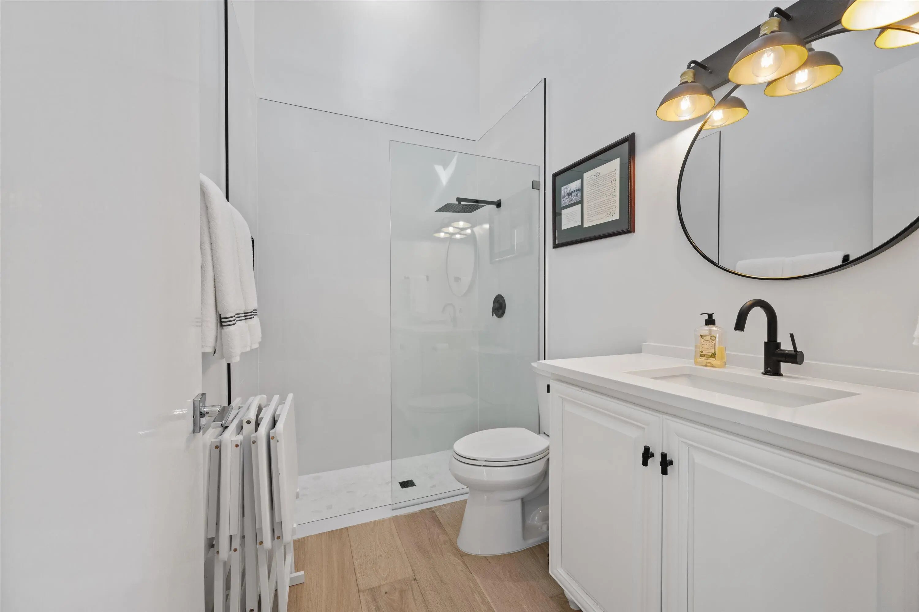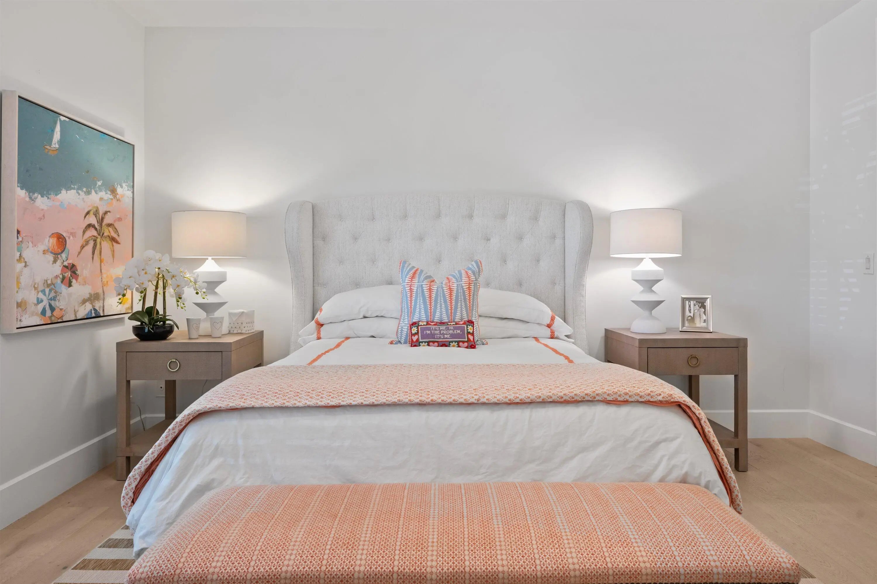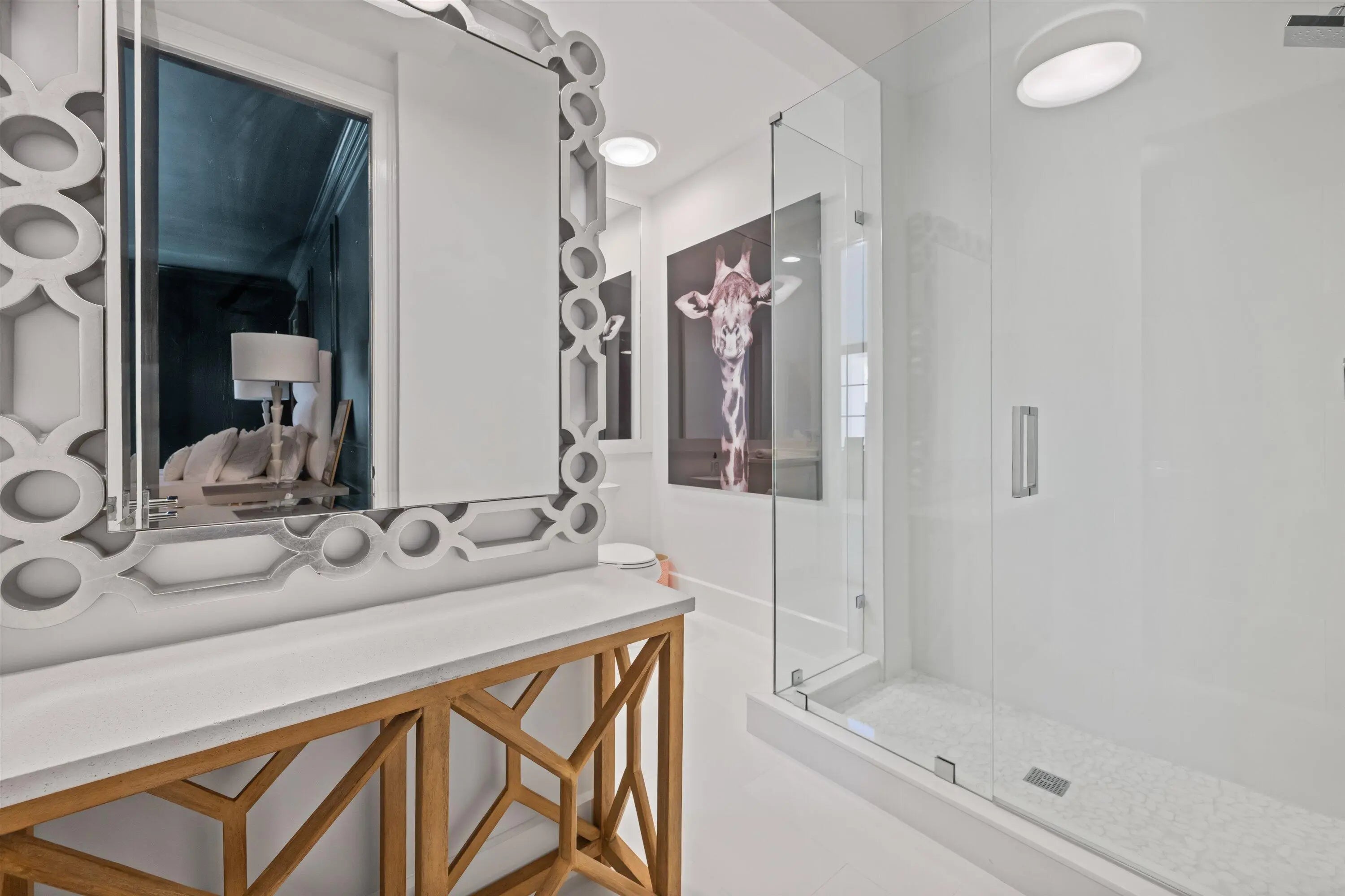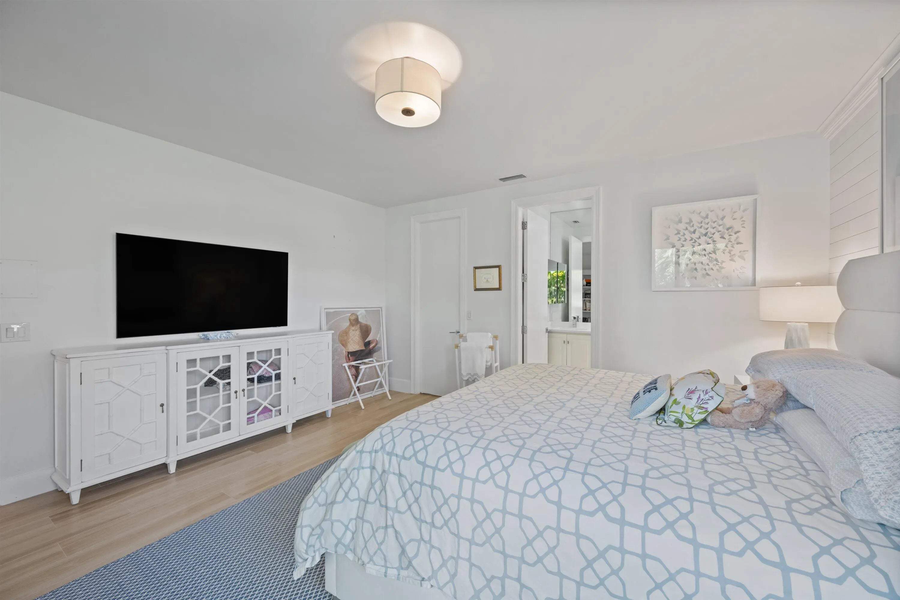 Located in the desirable Isle Brook neighborhood of Palm Beach Polo, this beautifully reimagined waterfront residence offers refined modern living with exceptional privacy. Featuring 4 bedrooms and 5 full bathrooms, the home is offered furnished and move-in ready.Soaring vaulted ceilings, skylights, and expansive windows fill the interiors with natural light, complementing the crisp neutral palette and sophisticated finishes throughout. The home has been upgraded with wood flooring, adding warmth and continuity to the open-concept design. The layout flows seamlessly into a well-appointed chef's kitchen with quartz countertops, custom cabinetry, a center island, and professional-grade stainless steel appliances.