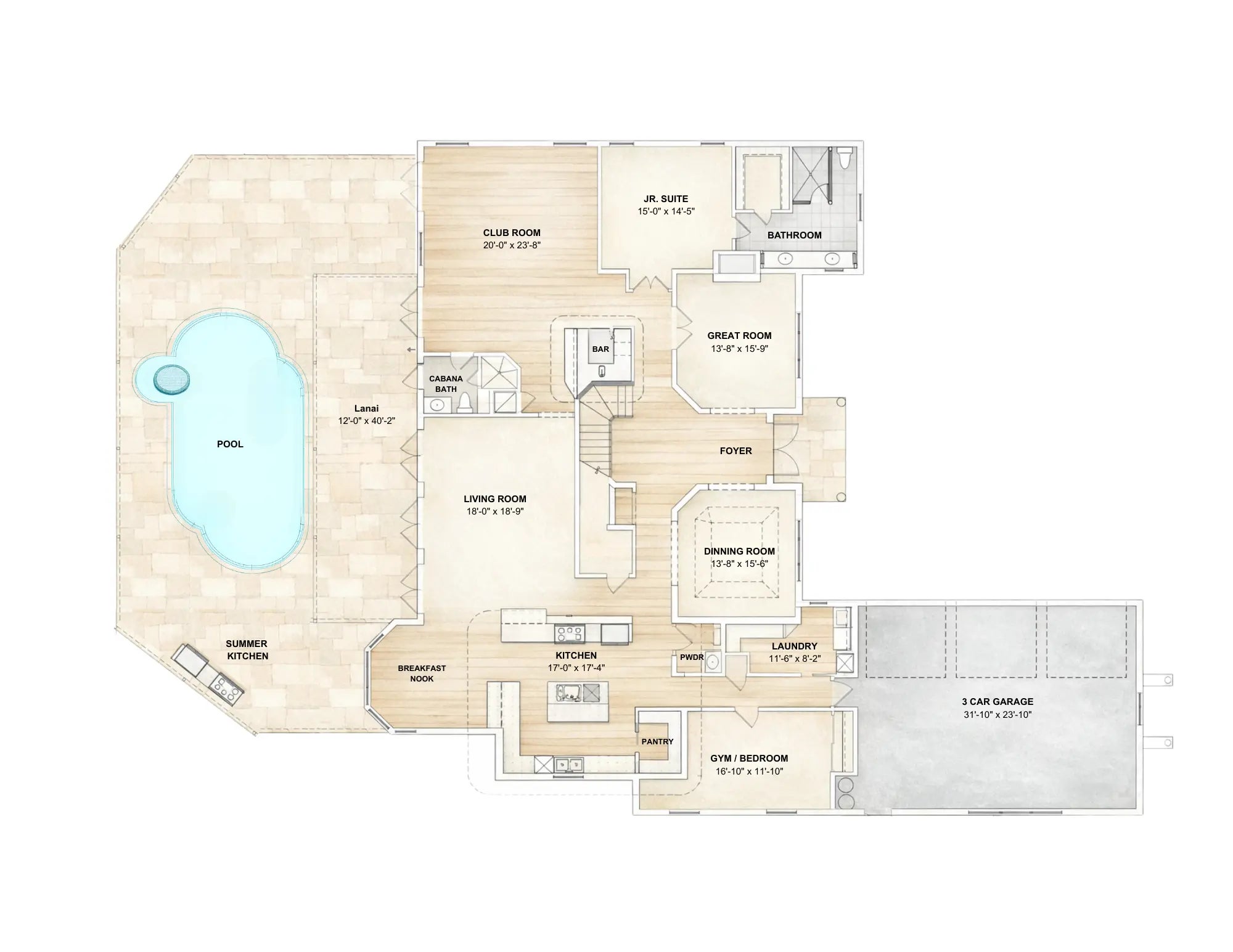 Bar, Foyer, French Door, Kitchen Island, Laundry Tub, Pantry, Walk-in Closet, Wet Bar