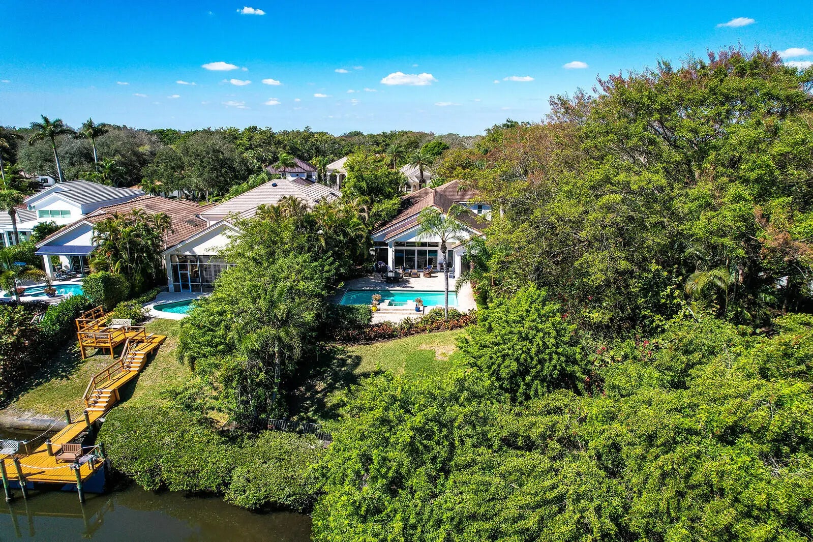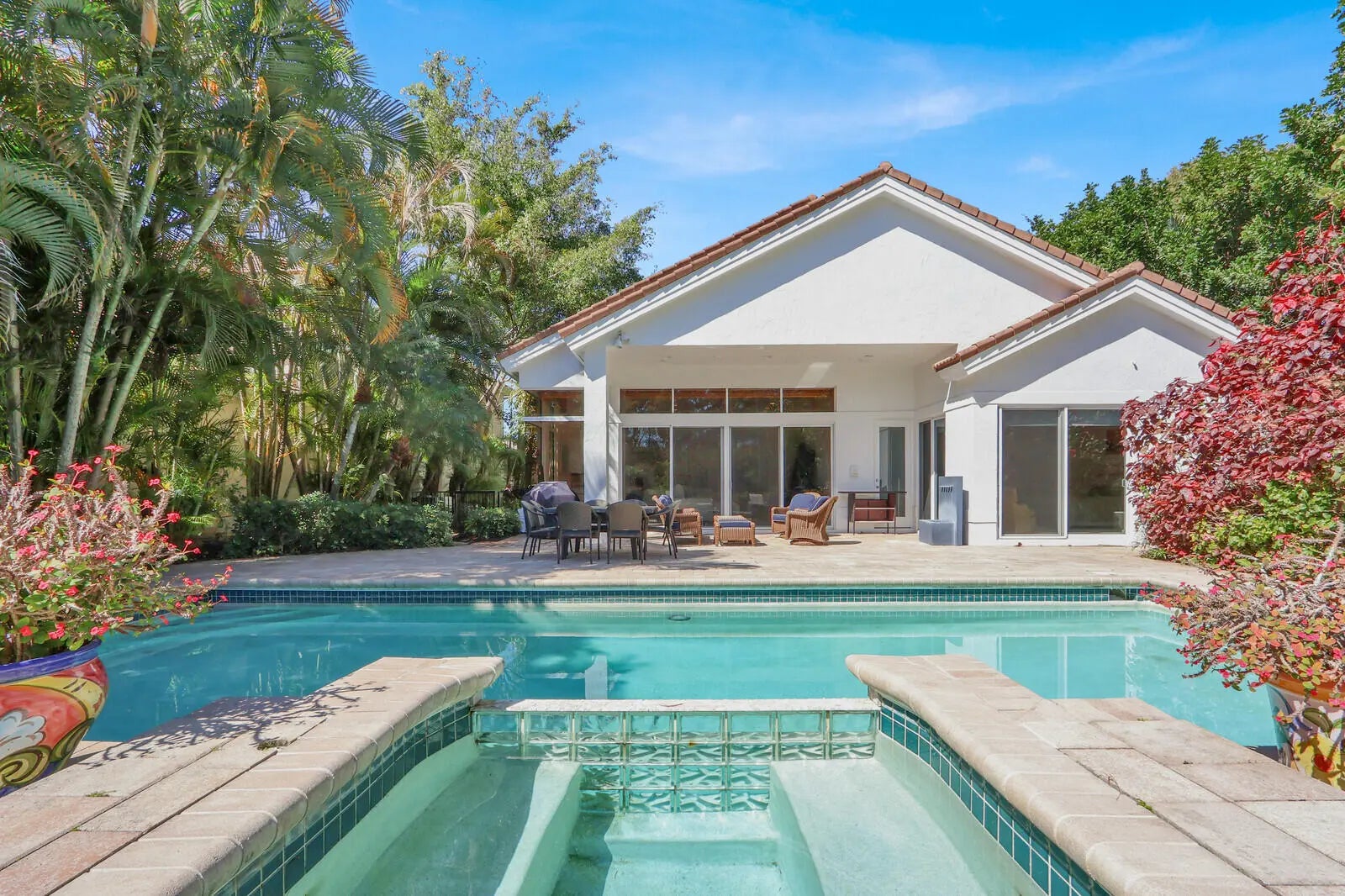 Light and bright pool home nestled in the golf and beach club of Frenchmans Creek. This extended patio residence offers 6 bedrooms, 7.1 baths plus an office and is filled with natural light. All guest bedrooms have ensuite baths. The outdoor space is perfect for entertaining with sparkling pool & spa, covered and open patio, lush gardens, and waterway.
