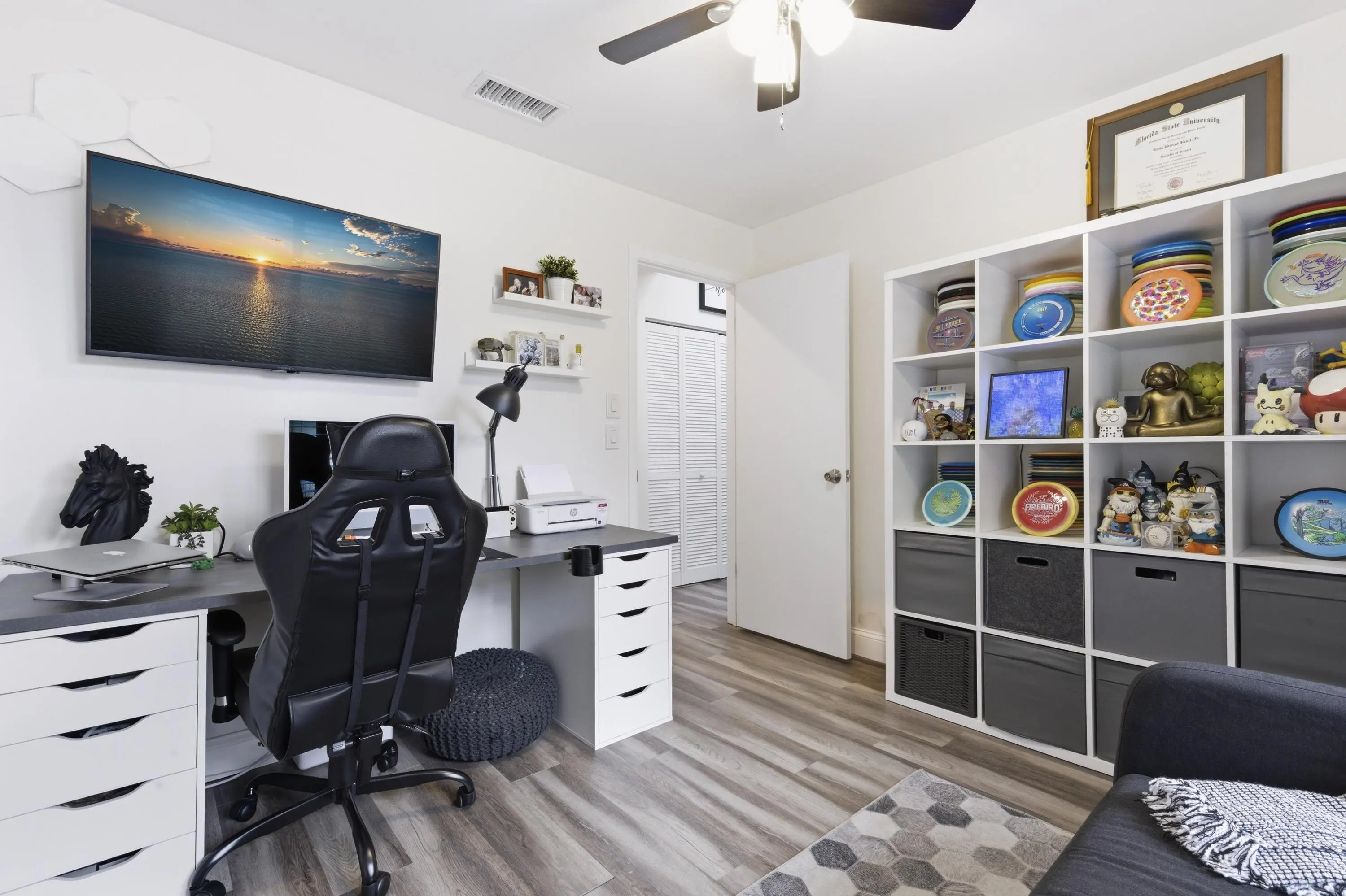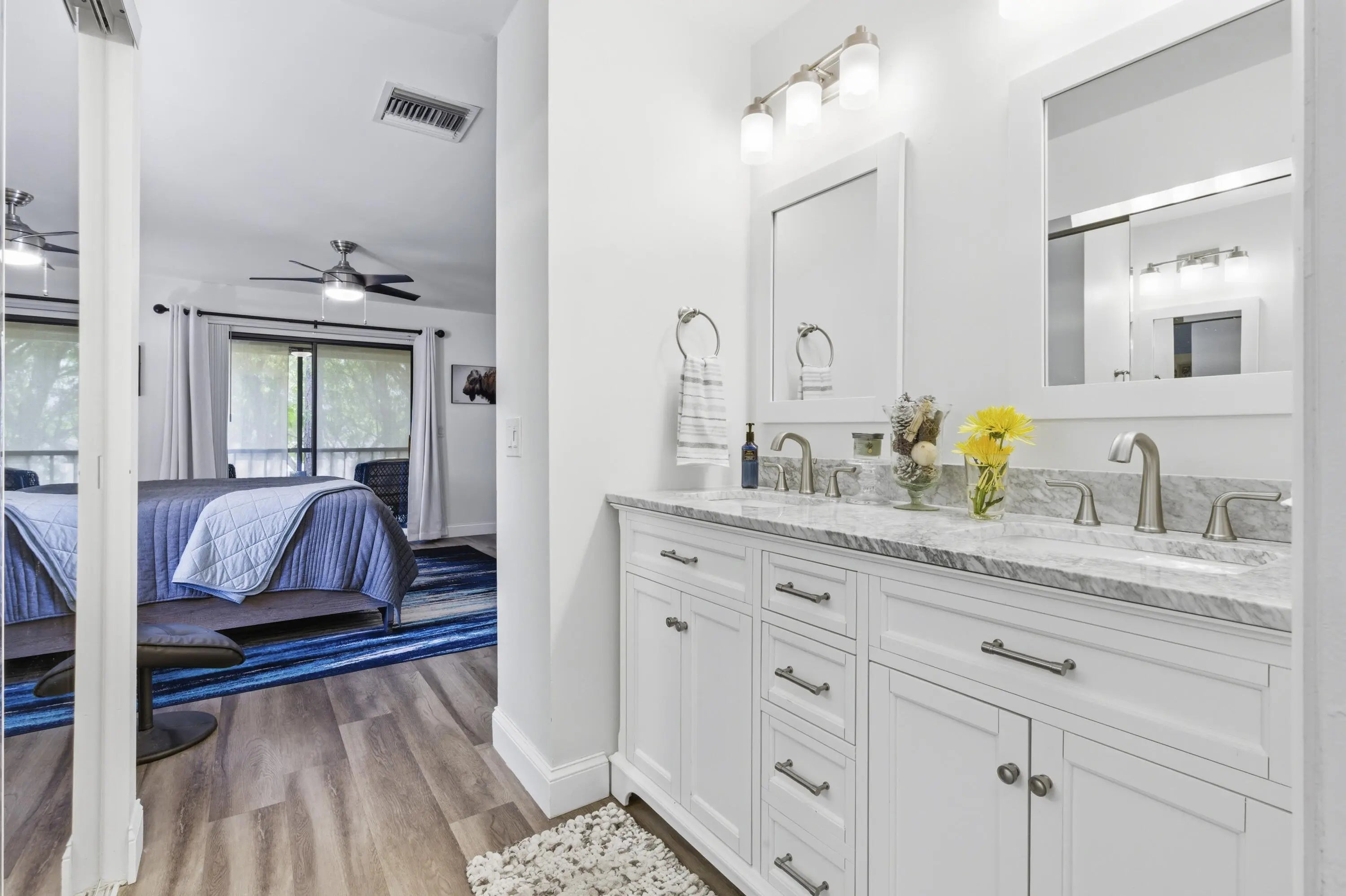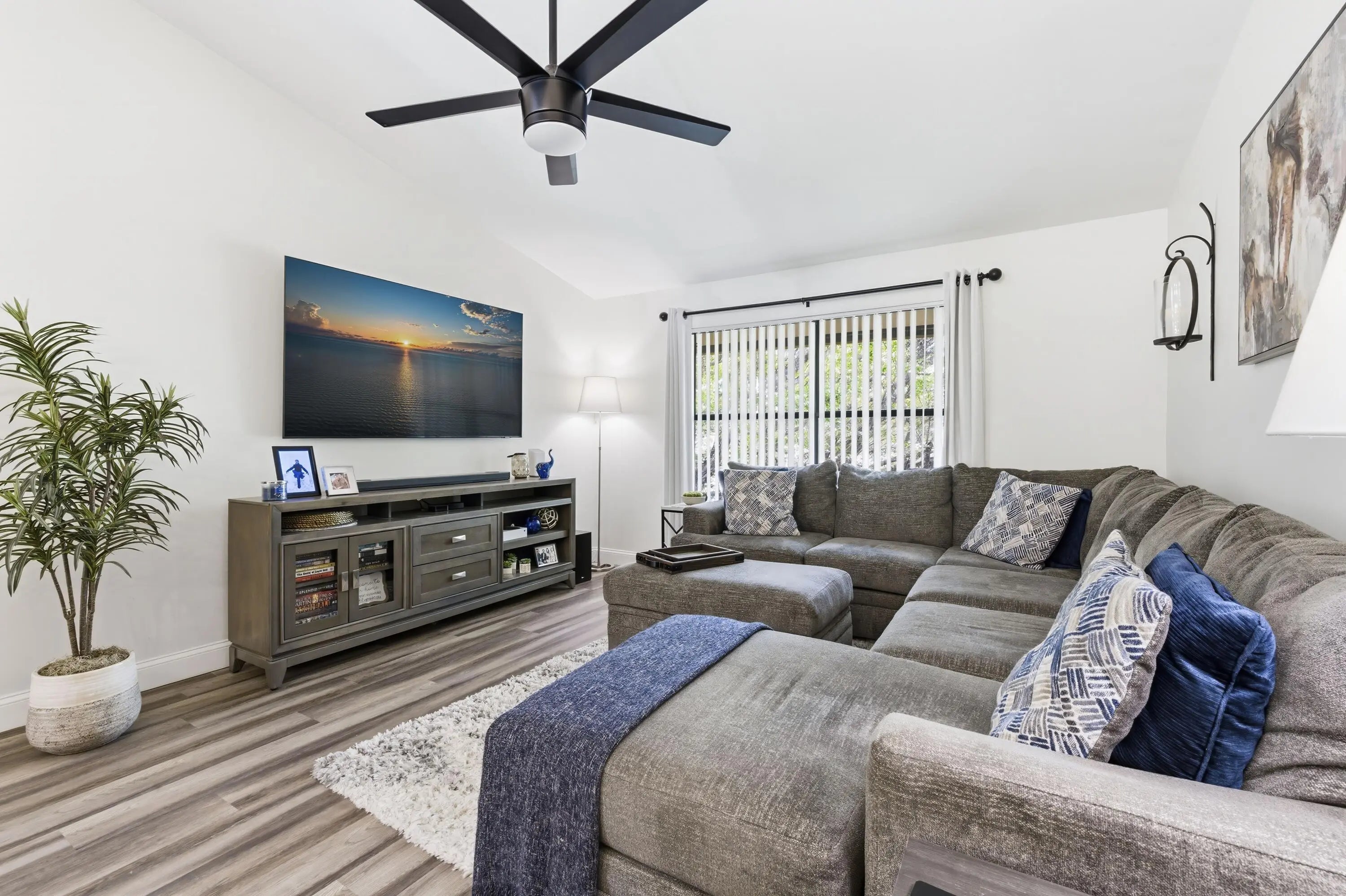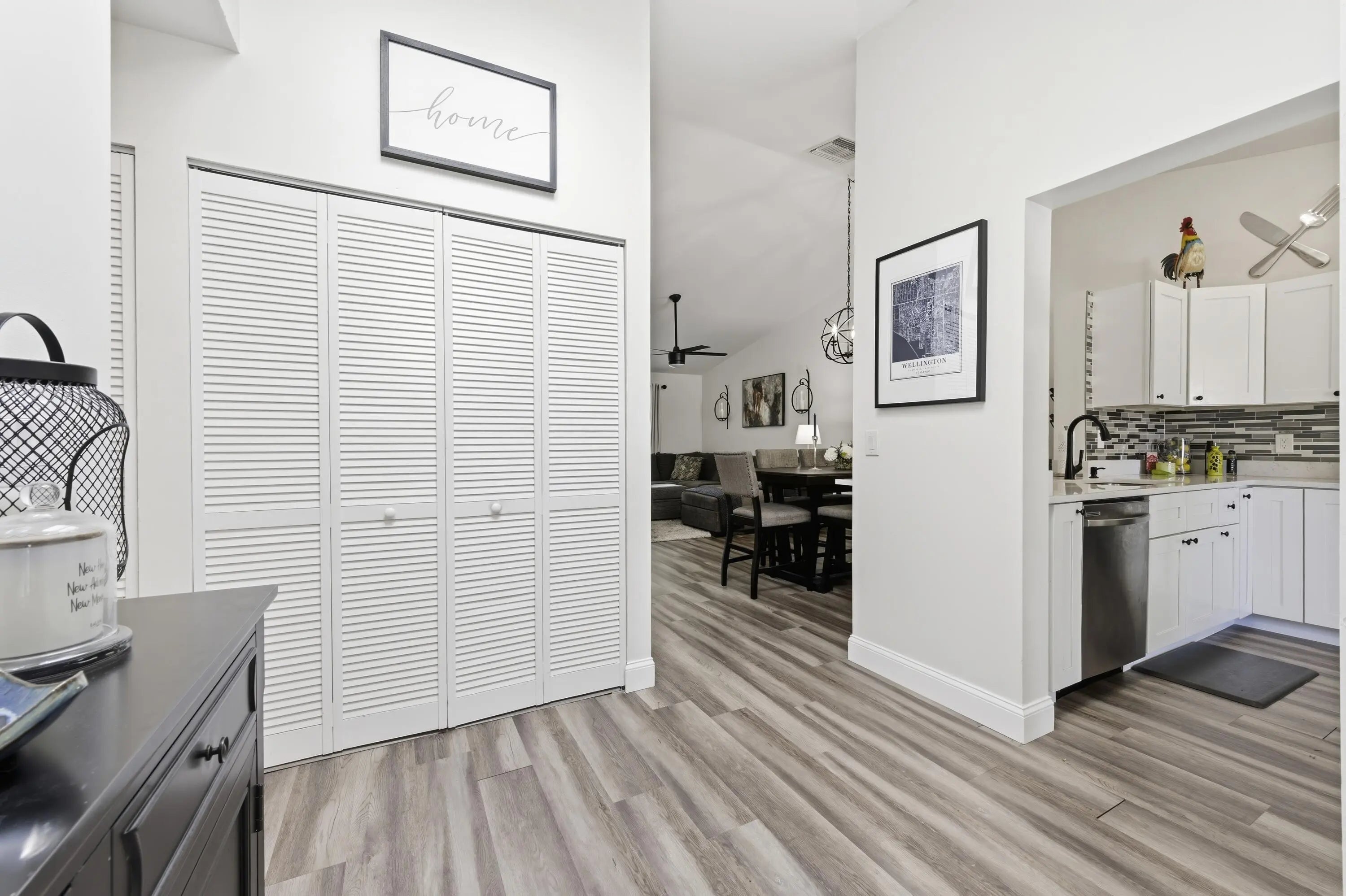 Beautifully updated 3 bedroom condo in the heart of Wellington, just minutes from world-renowned equestrian venues. This light, bright, and immaculate residence features a fantastic renovation including remodeled bathrooms, new luxury vinyl flooring, and a stunning contemporary kitchen with real wood white shaker cabinetry, Calacatta quartz countertops, and stainless-steel appliances. The open interior is enhanced by vaulted ceilings, impact skylights, and stylish designer paddle fans that create an airy, modern feel throughout. Enjoy outdoor living from the screened and covered balcony,. Additional storage room located just off the inviting front porch. Ideally located near Wellington's premier dining, shopping, and the Wellington Mall. Great home, perfect location, and exceptional value!