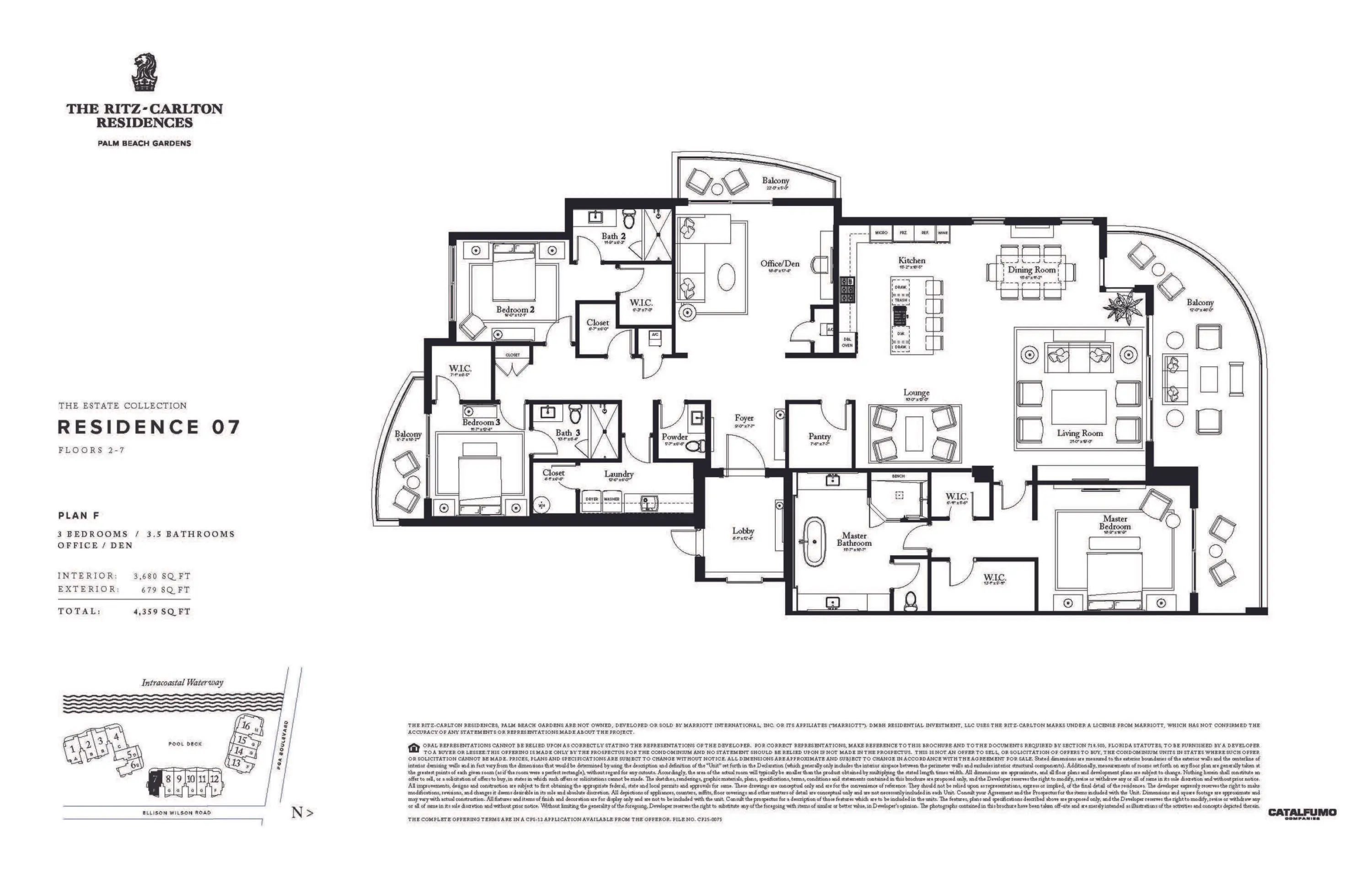 An expansive residence defined by the service, privacy, and lifestyle of The Ritz-Carlton - The Estate Collection. Offering three bedrooms plus a private office/den and three-and-a-half baths, this residence features approximately 3,680 SF of generous living spaces with floor-to-ceiling windows that extend seamlessly to a 679 SF private terrace with sweeping Intracoastal views. The kitchen features European oak-finish cabinetry, Wolf and Sub-Zero appliances, wine storage, and oversized island. The primary suite is a private retreat with dual walk-in closets and elegant bath. Residents enjoy a private, residential-only building enhanced by over 20k square feet of resort-style amenities and the legendary service standards synonymous with The Ritz-Carlton.